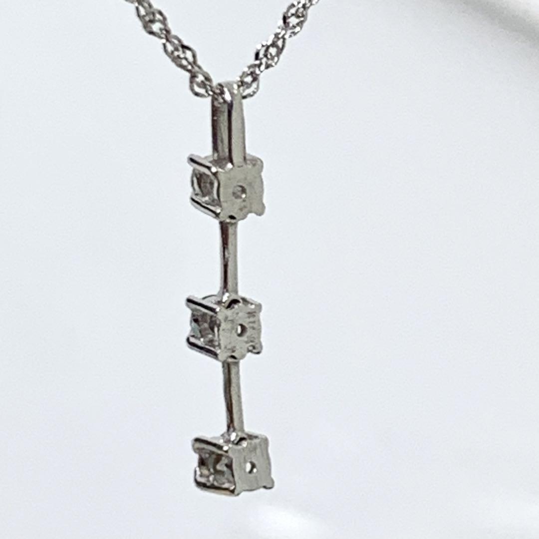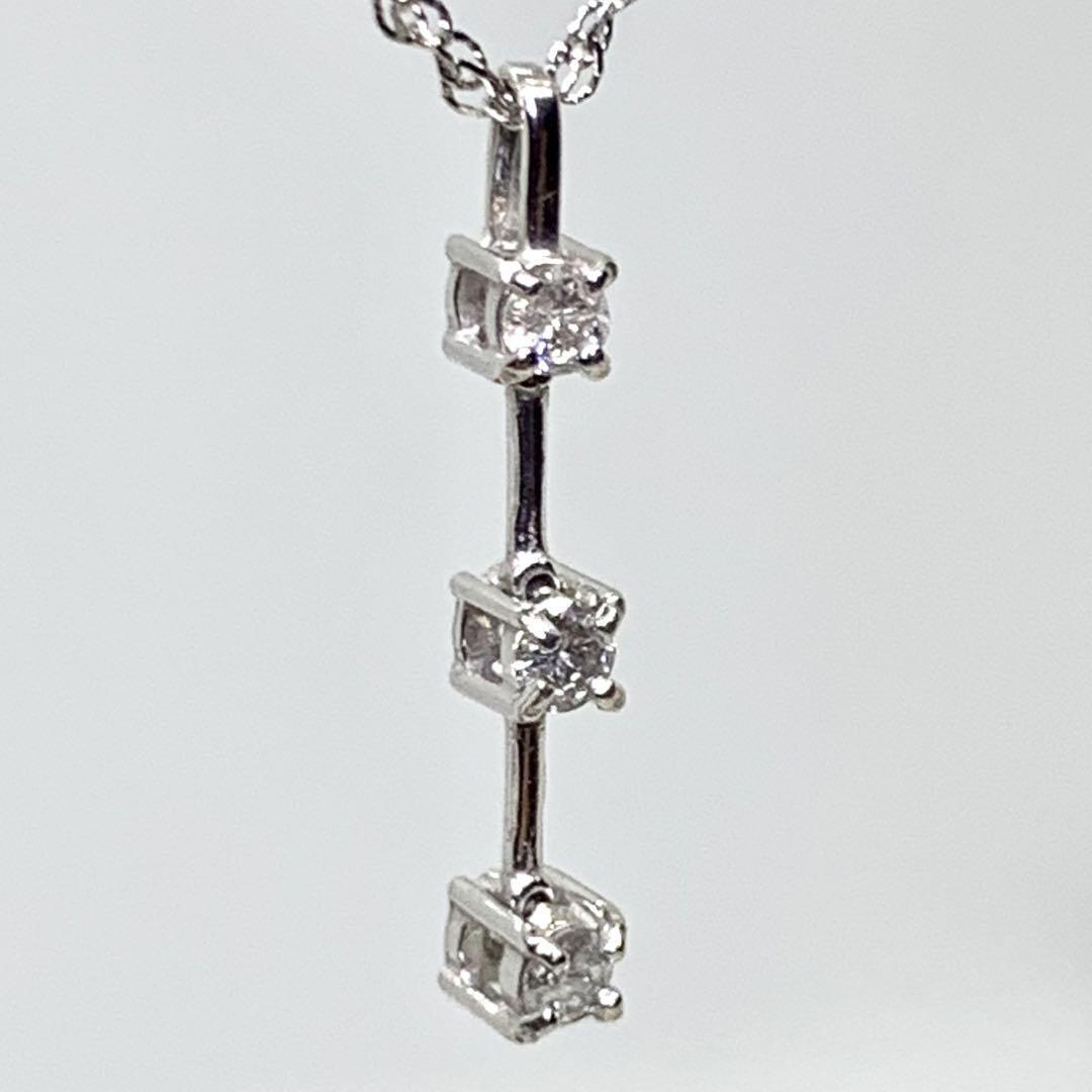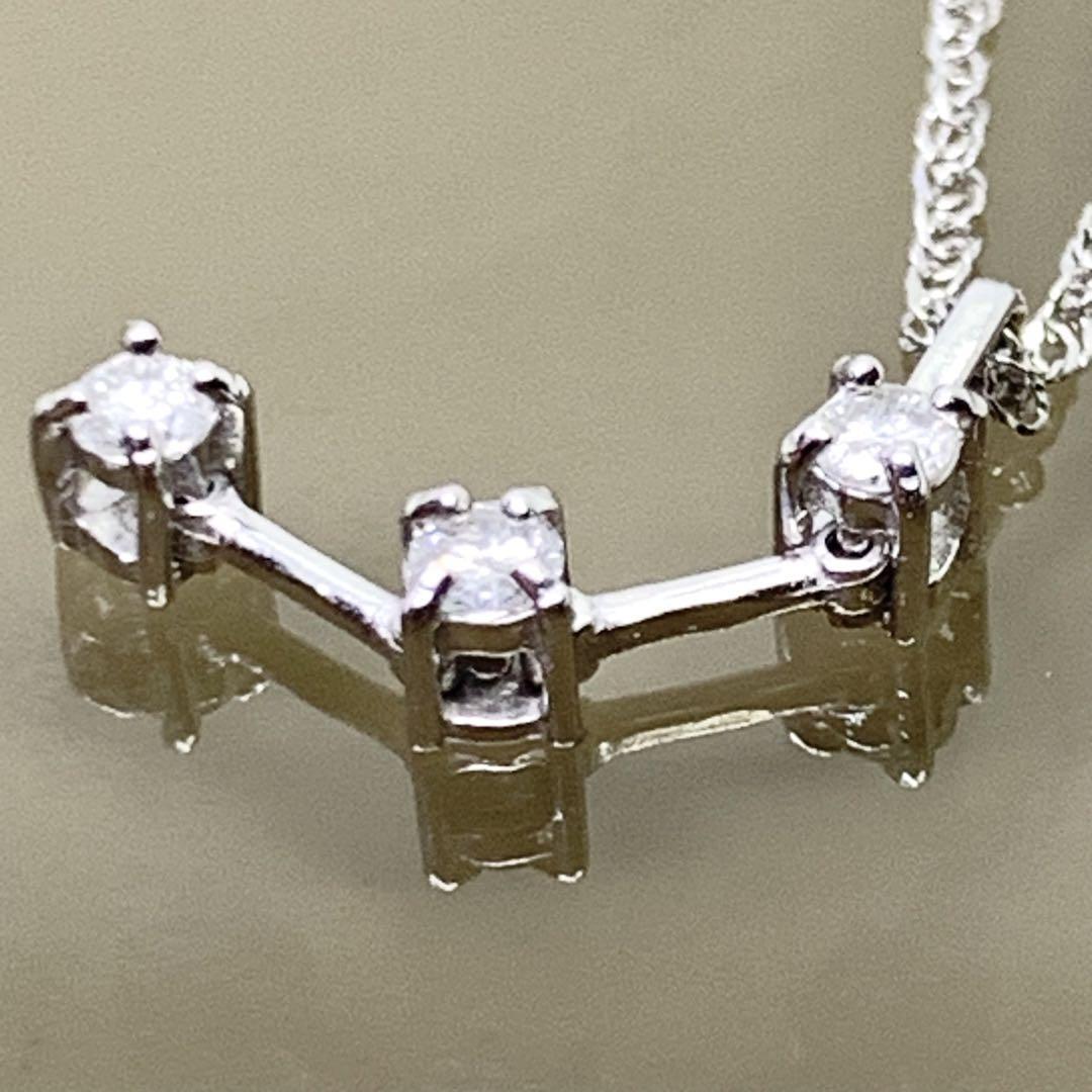 K10WG ダイヤモンドのネックレスです。縦に3pcsのダイヤが揺れて存在感抜群のシンプルなデザインなのでシーンを選ばすお使いいただけます。