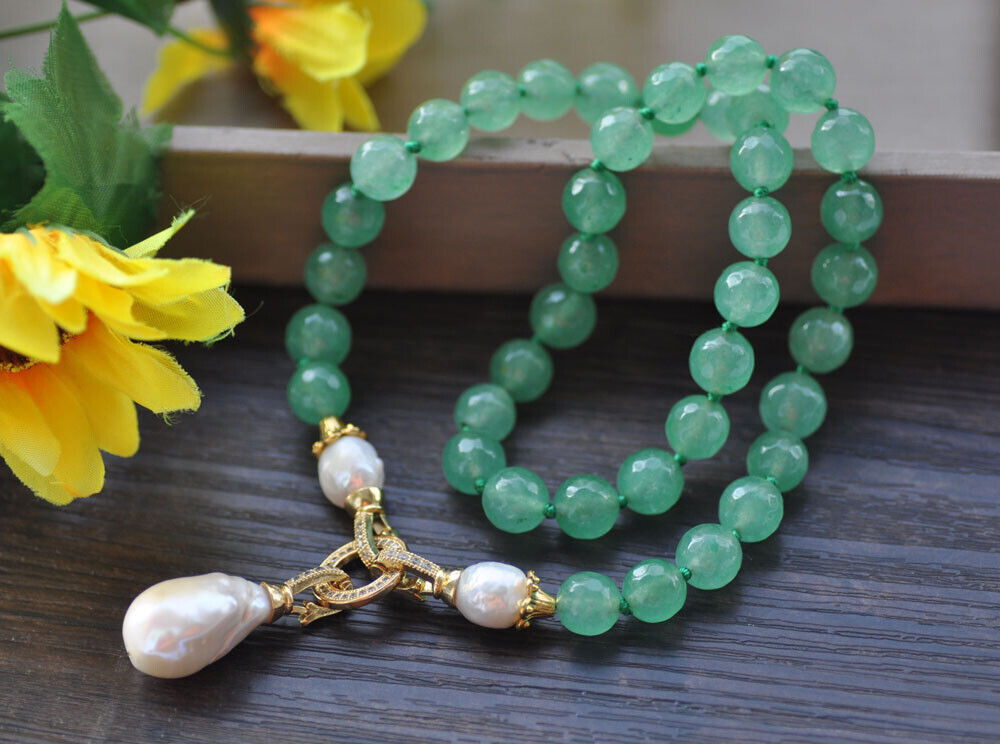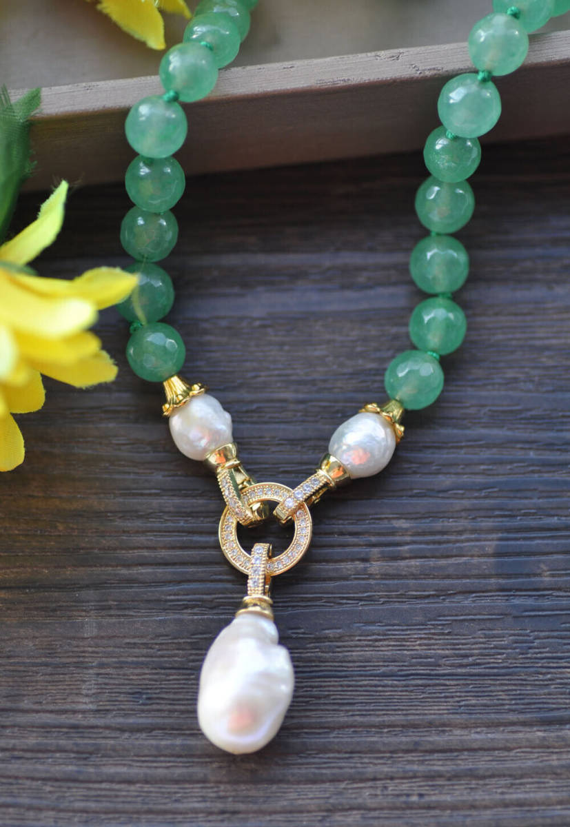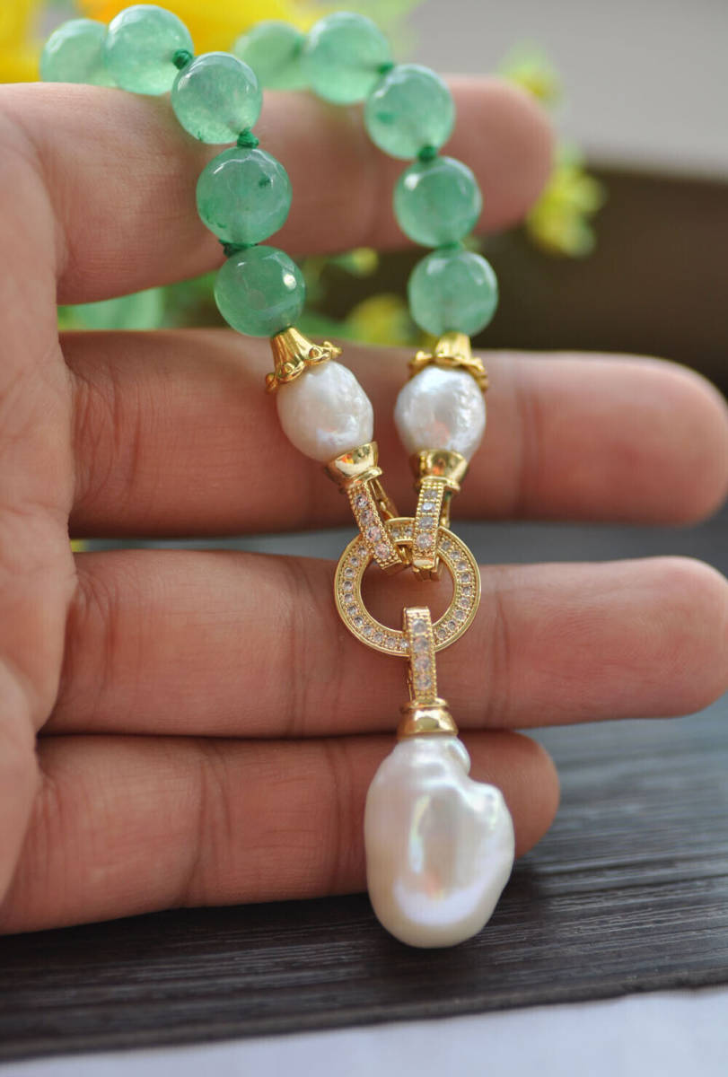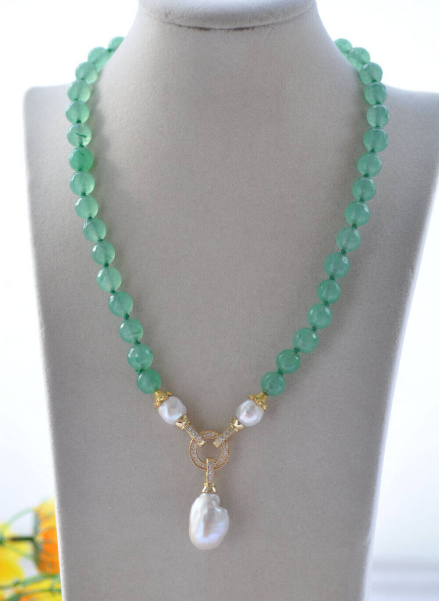 <新品>ホワイト 淡水 ケシ パール 真珠 グリーン ジェイド cz 19インチ ネックレス 結婚式 お出かけ プレゼント パーティー ギフト A e