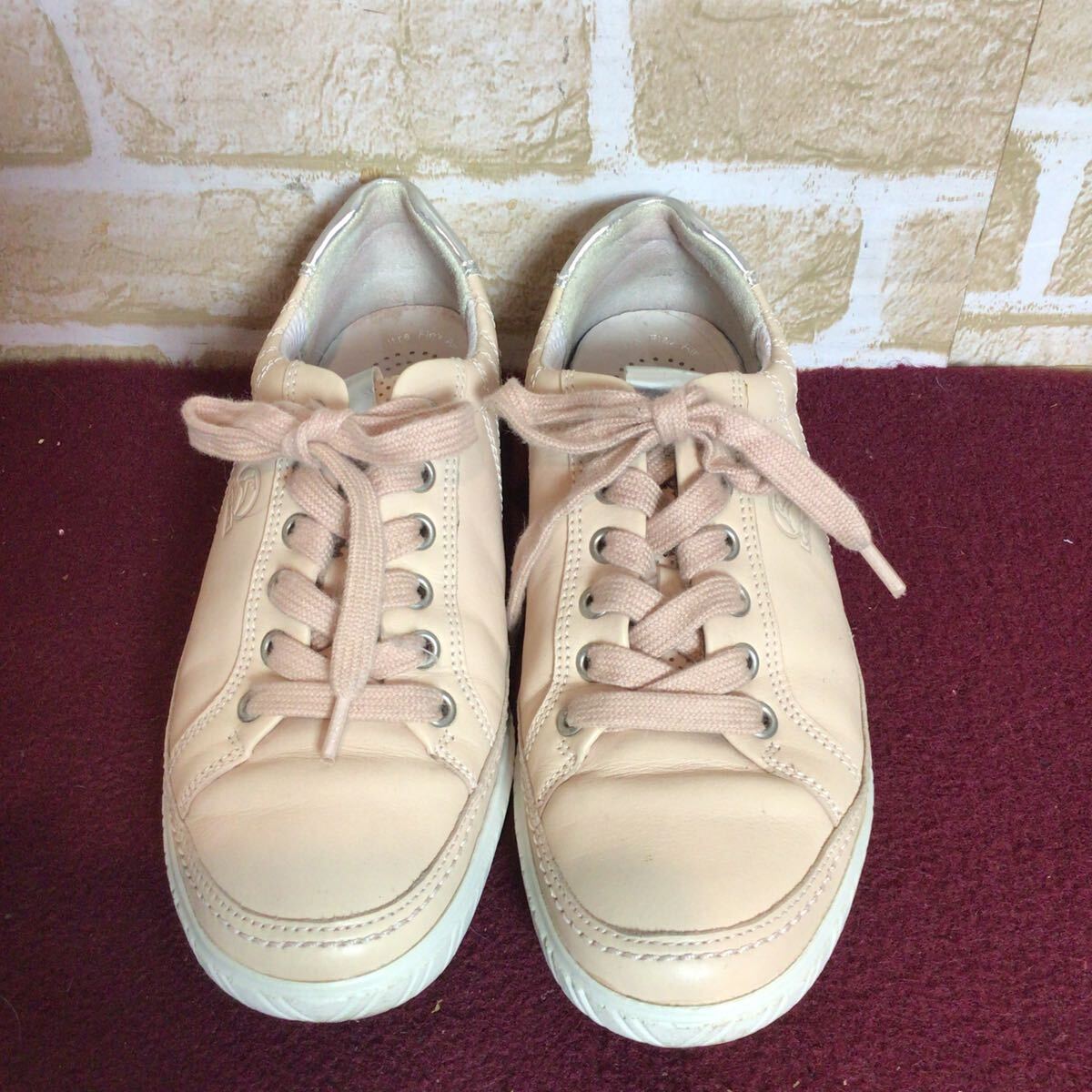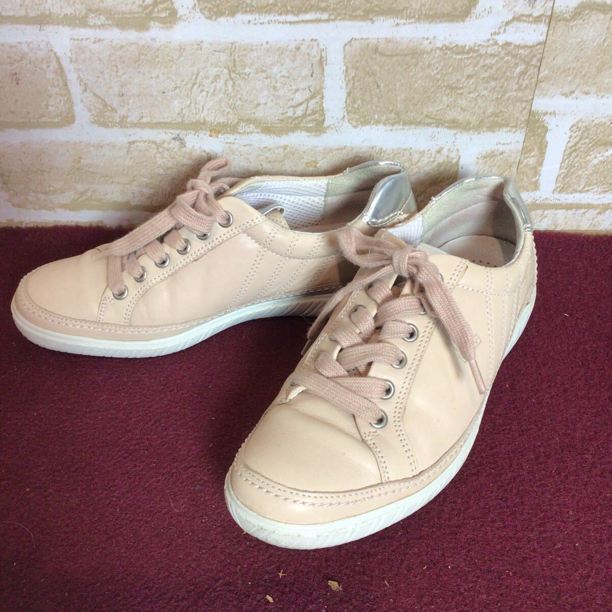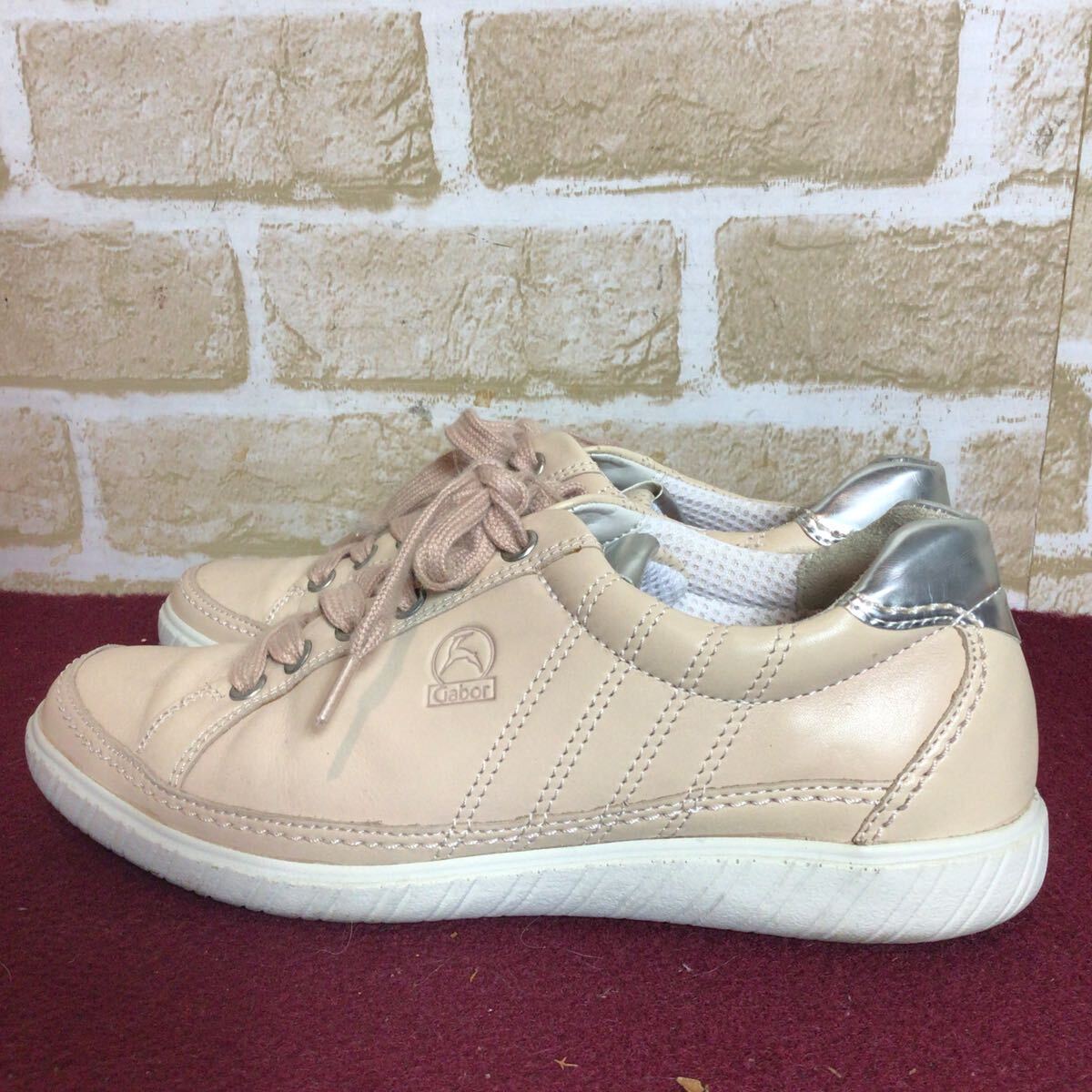 【売り切り!送料無料!】A-370 Gabor!レザースニーカー!ベージュ!4 23.0cm位!ピンクベージュ!レザー!比較的キレイ!中古!