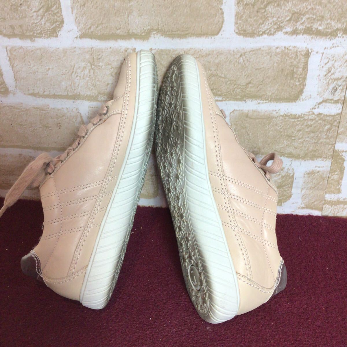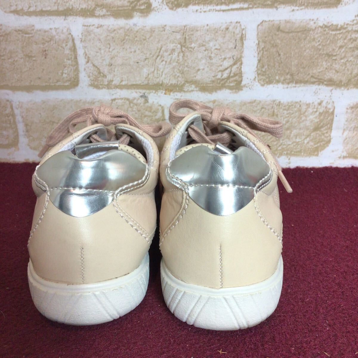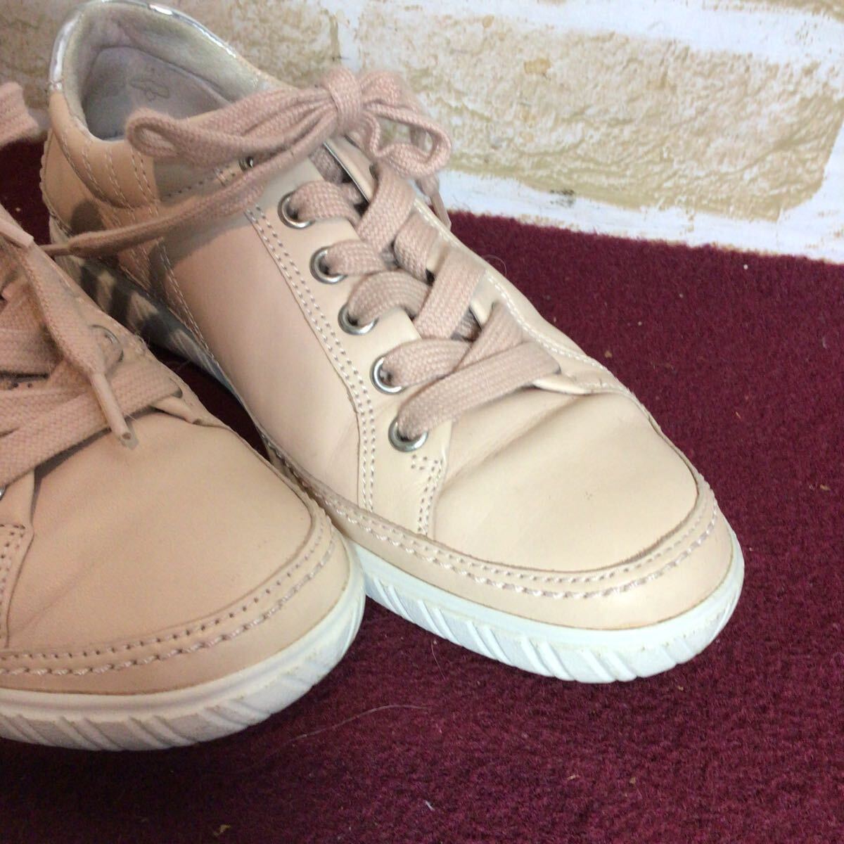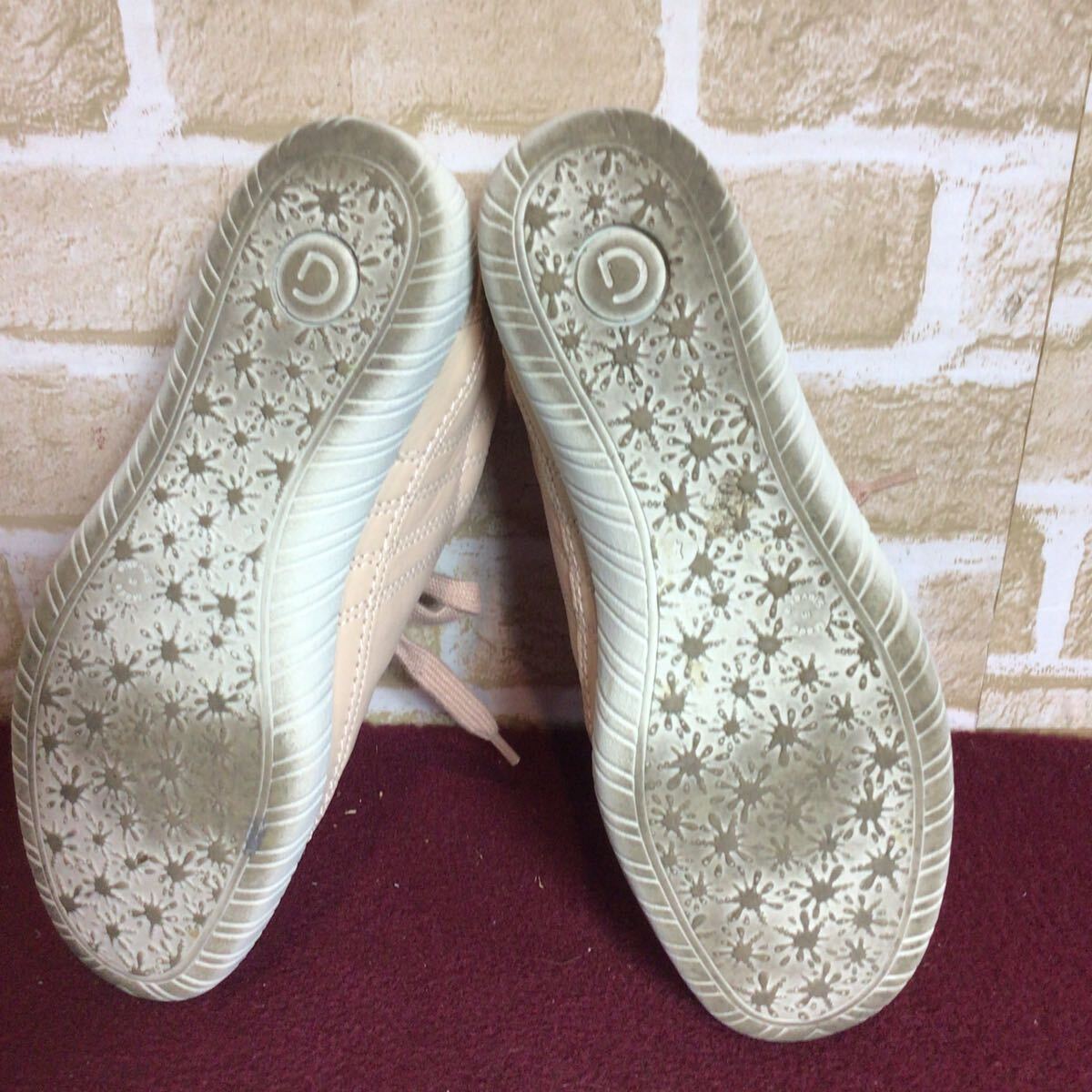 【売り切り!送料無料!】A-370 Gabor!レザースニーカー!ベージュ!4 23.0cm位!ピンクベージュ!レザー!比較的キレイ!中古!