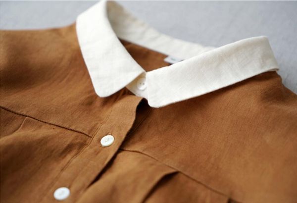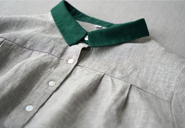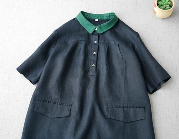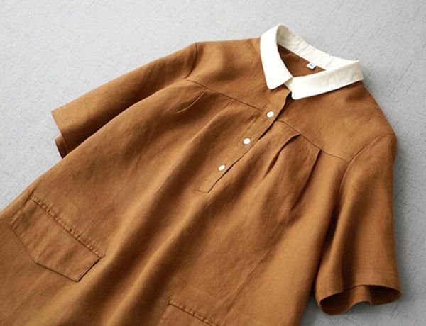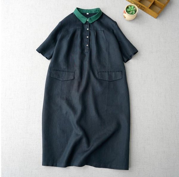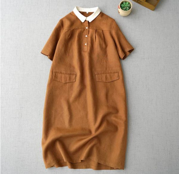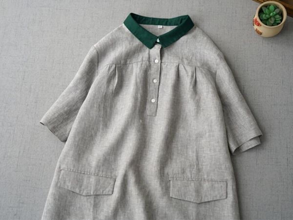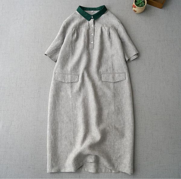 夏新品~オシャレ シャツワンピース リネン ワンピース 大人 綿麻 きれいめ 着痩せ 半袖 大きいサイズ ひざ丈ワンピース~グレー