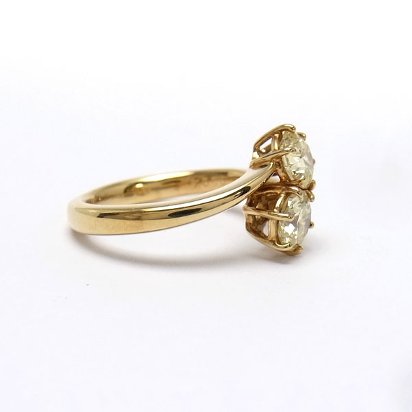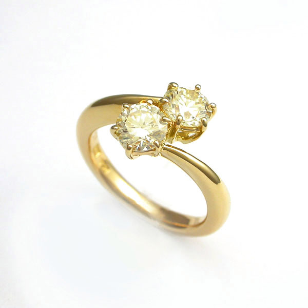 コメントファンシーな輝きで指本を彩るシンプルで上品なリング。ダイヤモンド2石(0.504ct、0.507ct)が並んで強く煌きアクセントになります。カラーは鑑定書が無いため正確には分かりませんが、ベリーライトイエローからライトイエロー位かと思われます。