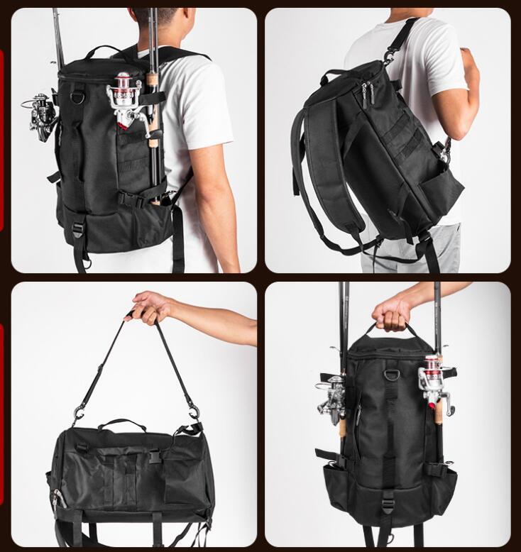新入荷 釣り バッグ ショルダー ロッドホルダーフィッシング リュック メッシュ 黒
