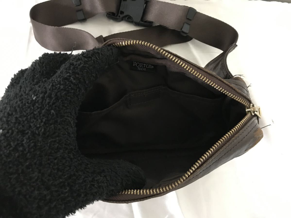 商品名:本物ポーターPORTERコーティングキャンバスミニショルダーバッグビジネスポシェットボディバックレディースメンズ茶日本製吉田カバン