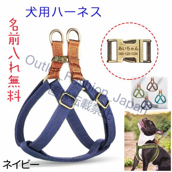 (ネイビー)犬用ハーネス ズック 夏用 軽量 おしゃれ おすすめ 名前入り 胴輪 小型犬 中型犬 犬用 ハーネス 名入れ かわいい ハーネスベルト