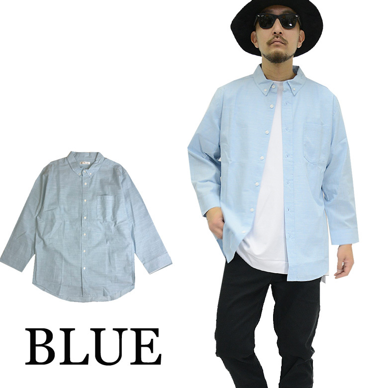 7分袖シャツ スラブ素材 シャンブレーシャツ 54383 メンズ ビッグシルエット オーバーサイズ 新品 ブルー LL
