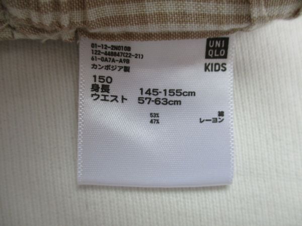 BF682【UNIQLO・ユニクロ】チェック模様 キュロット スカート 女児 淡茶系 150 | |