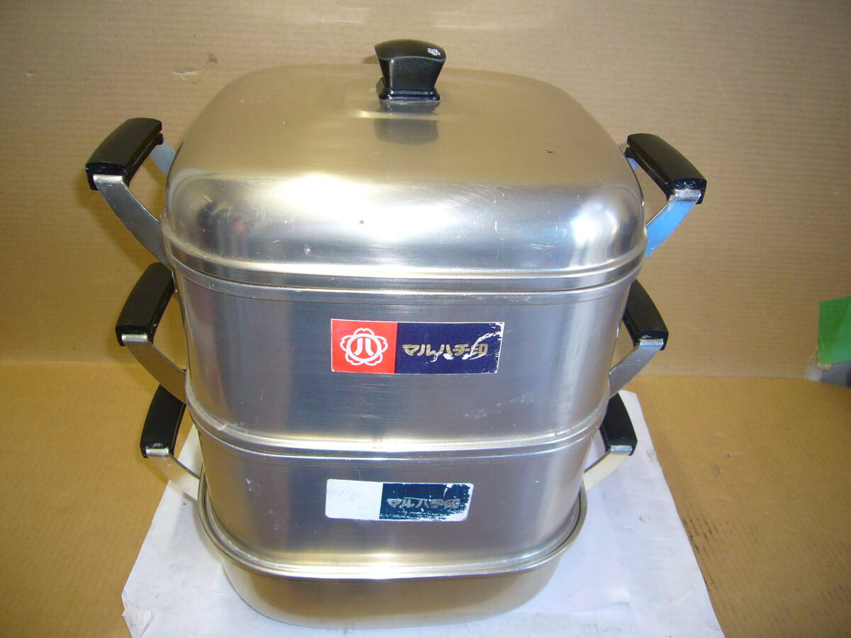 使用状況:マルハチ印 角蒸し器 24㎝ 3段 中古品 当時物 です。