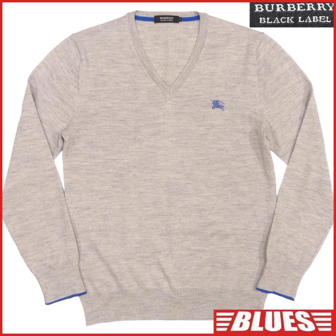 即決★BURBERRY BLACK LABEL★メンズ M 廃版 ニット セーター バーバリーブラックレーベル 2 グレー 三陽商会正規 ナイト刺繍