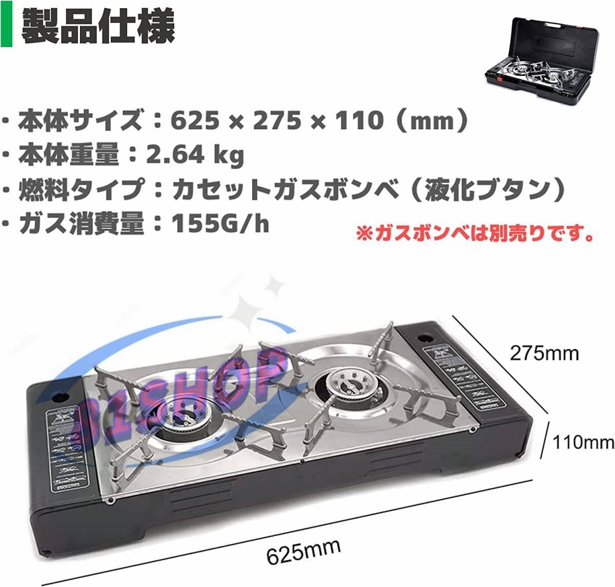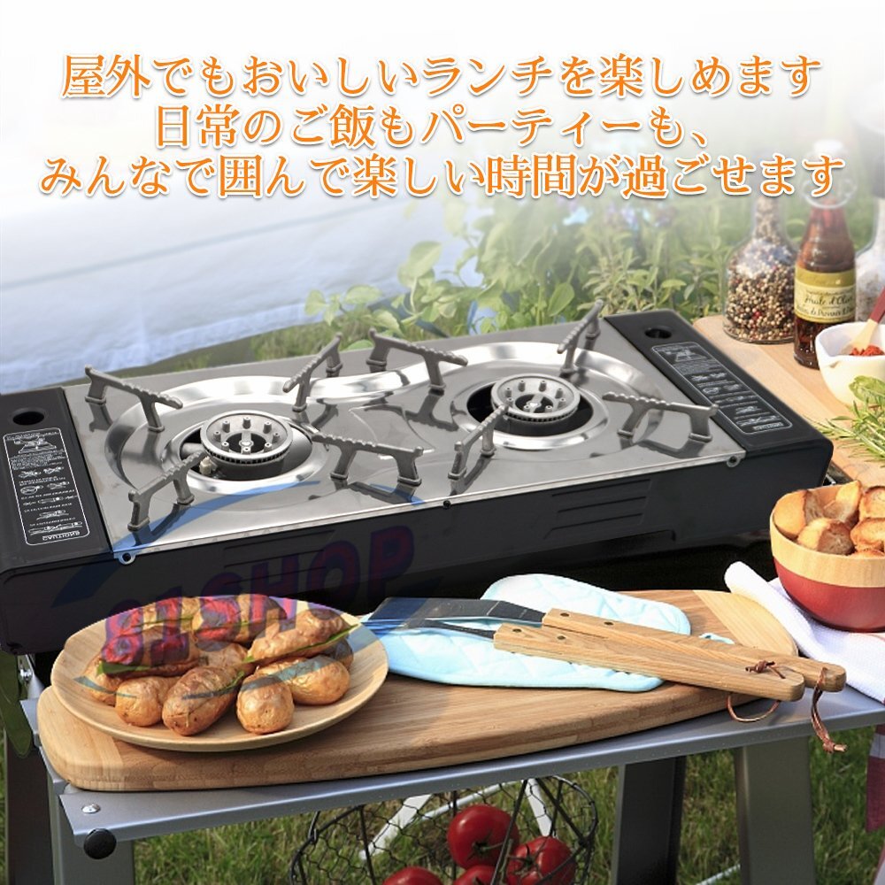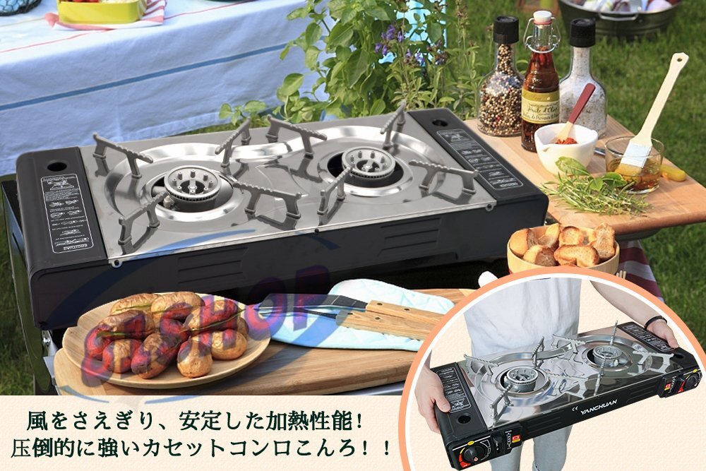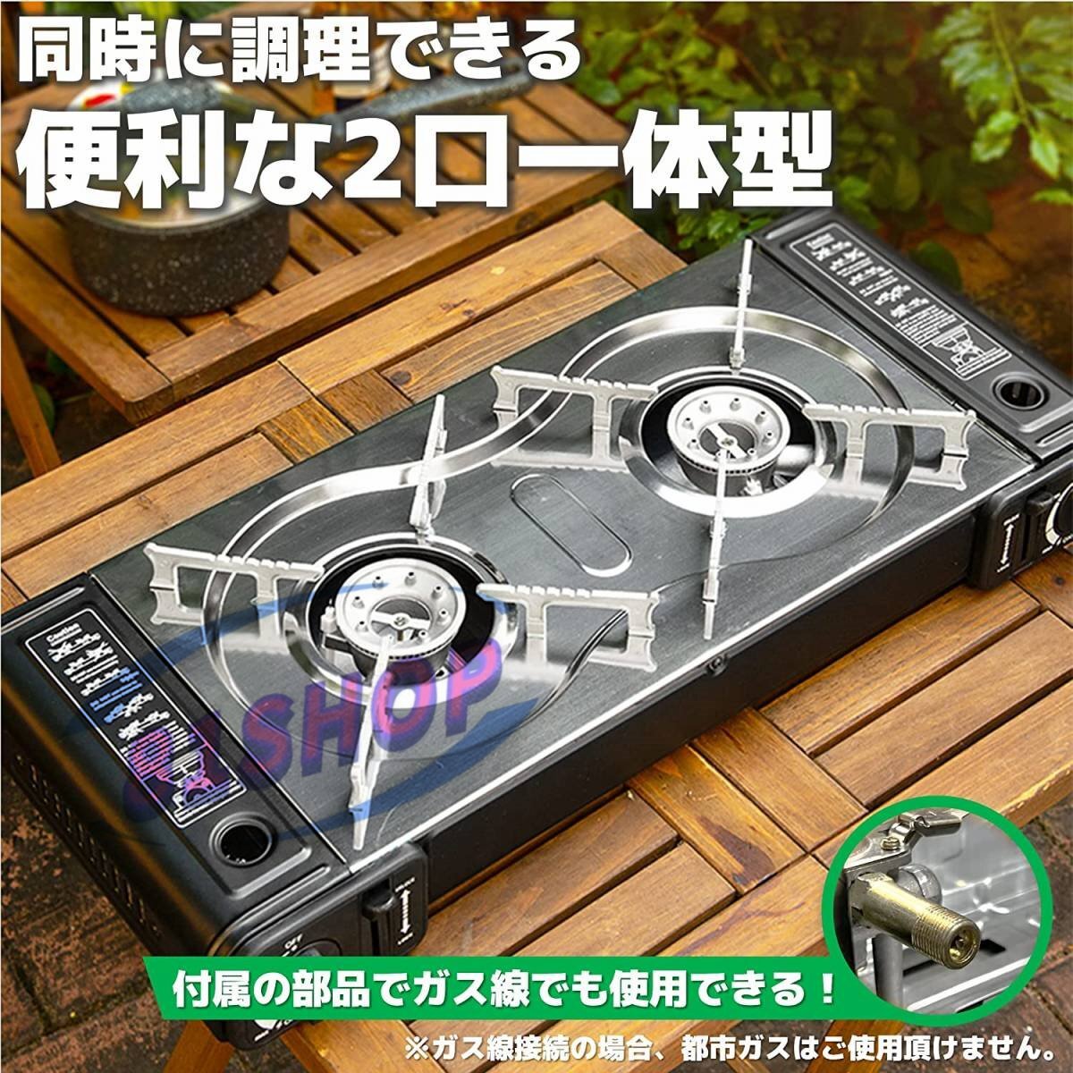 「81SHOP」カセットストーブ カセットコンロ 耐荷重30kg 強火力2.5kW×2 強火力コンロ 防風 ガスボンベ式 2連 アウトドア ケース付き