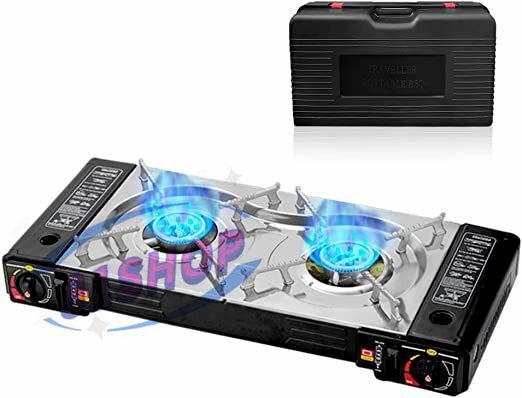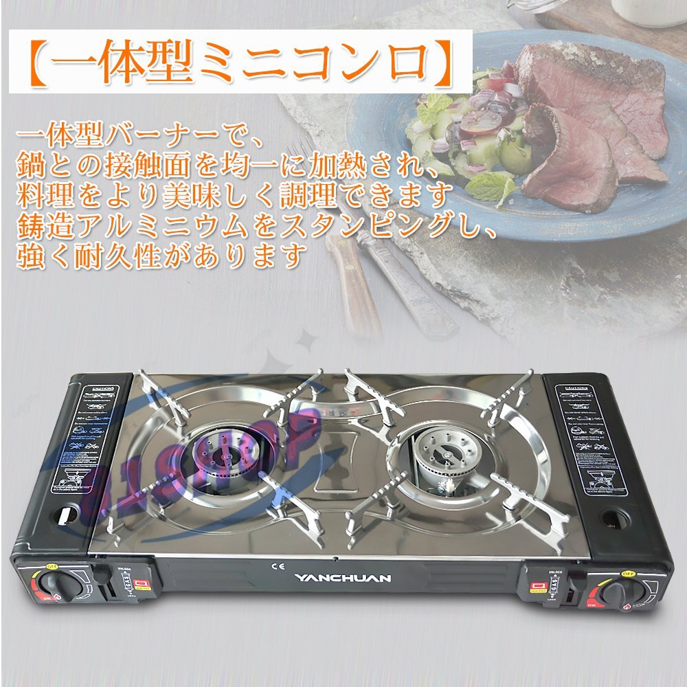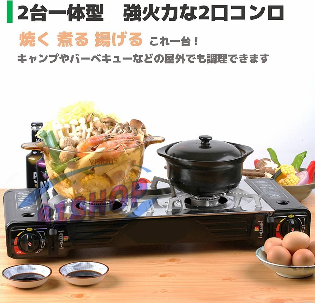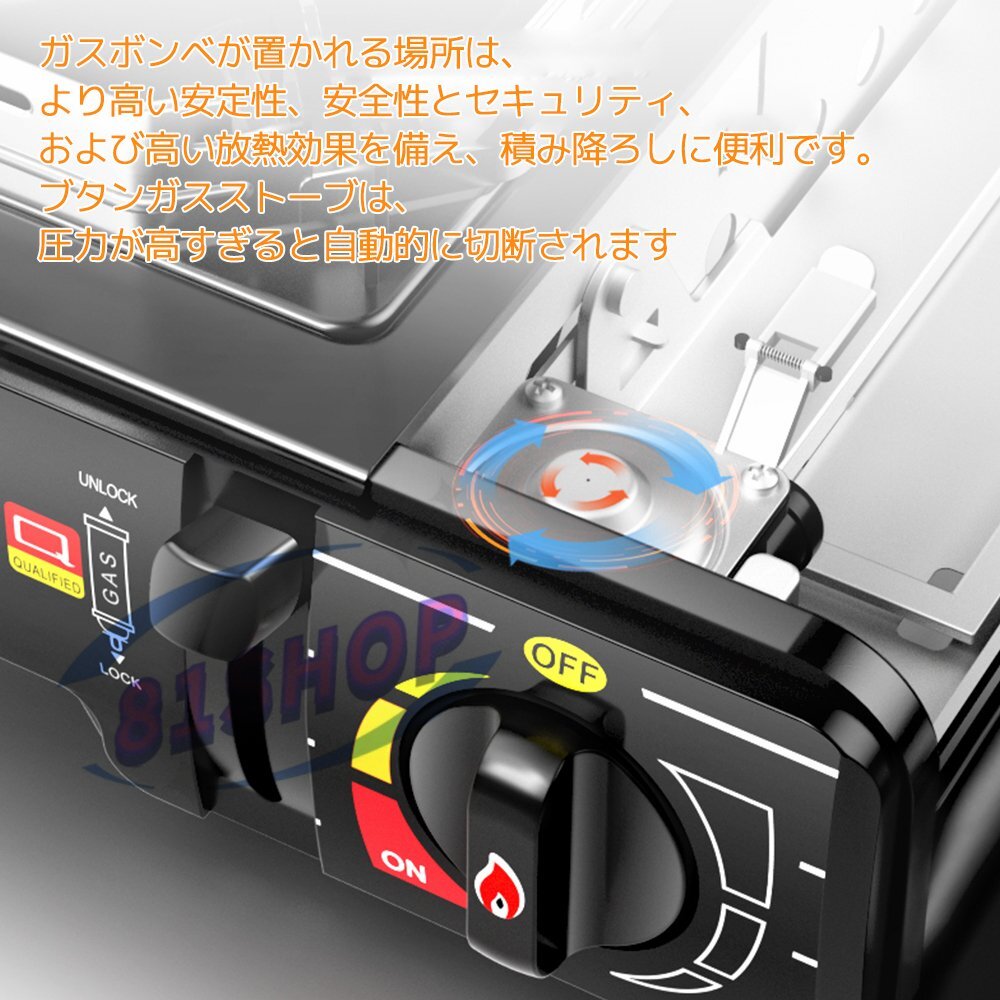 「81SHOP」カセットストーブ カセットコンロ 耐荷重30kg 強火力2.5kW×2 強火力コンロ 防風 ガスボンベ式 2連 アウトドア ケース付き