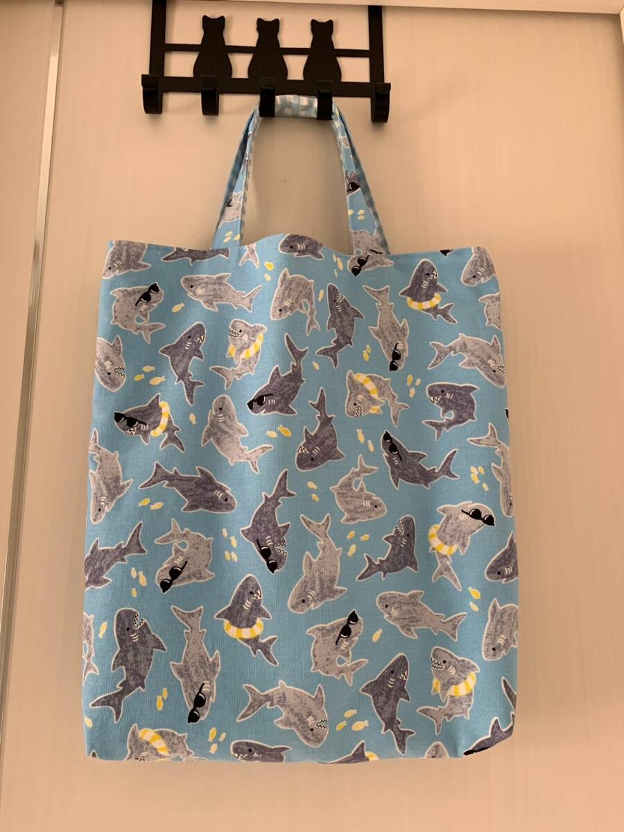 人なつっこい、やんちゃな鮫たちの手提げトートバッグです!