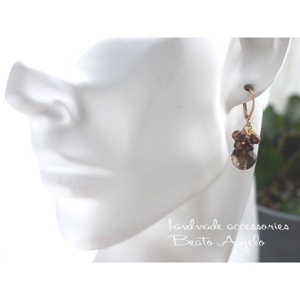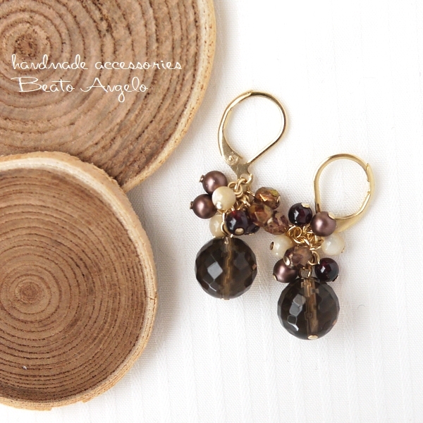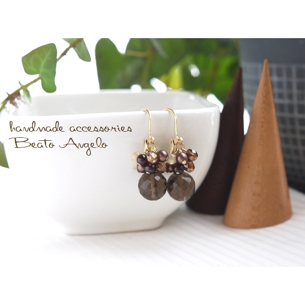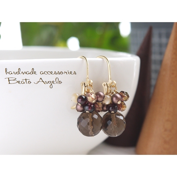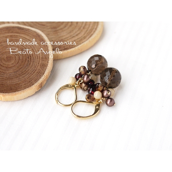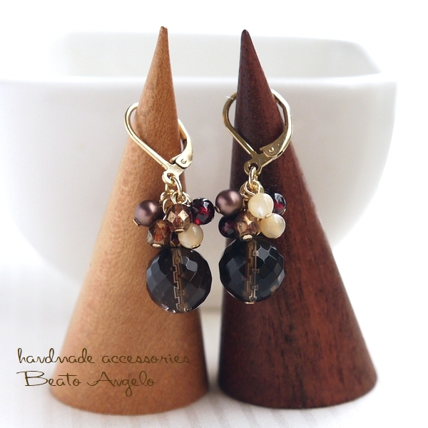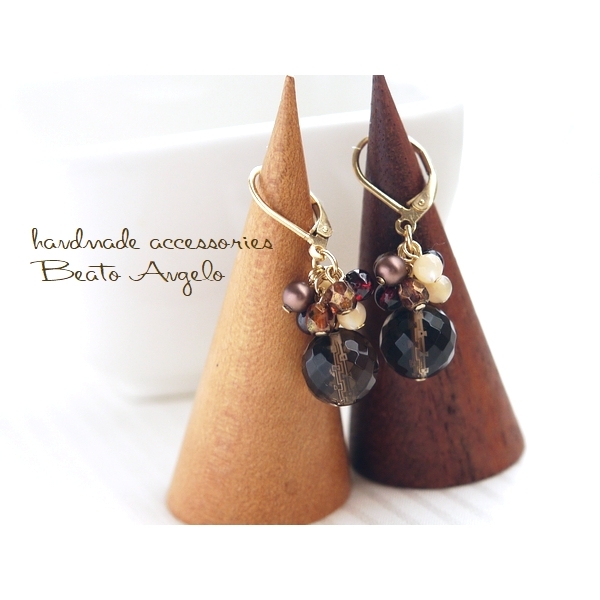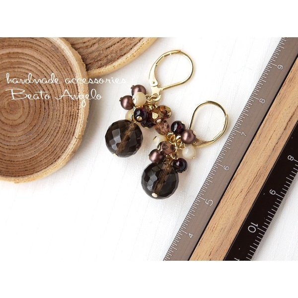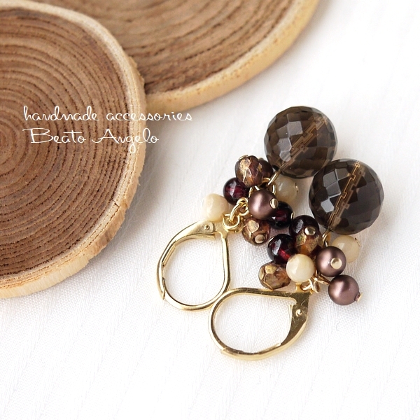 ◇◆+angelo+天然石スモーキークォーツとガーネットのピアス(p-346)G ブラウン チェコビーズ r001