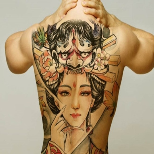 グリポッチ タトゥーシール シールタトゥー メンズタトゥー ボディーシール 背中一面 入れ墨シール 特大 48cm*34cm【姫】