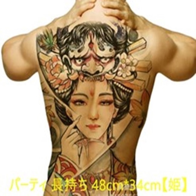 • 商品名 グリポッチ タトゥーシール 印刷 和柄 メンズ タトゥー ボディーシール 大きめ 背中一面 仮装 パーティ 長持ち 48cm*34cm【姫】です。水で簡単に貼れる転写シールタイプのタトゥーです。落ち着きのある和柄ながら華やかでカラフルな色合いで派手さとシックのバランスが丁度いい商品です。
