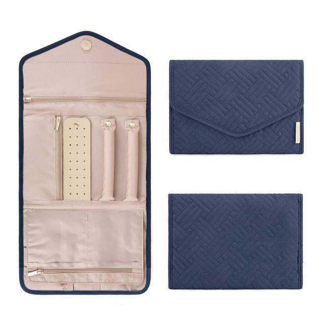 I コンパクト大容量ジュエリーケース ブルー 旅行ジュエリーケース/携帯用アクセサリーケース/ピアスケース/リングケース/ネックレスケース