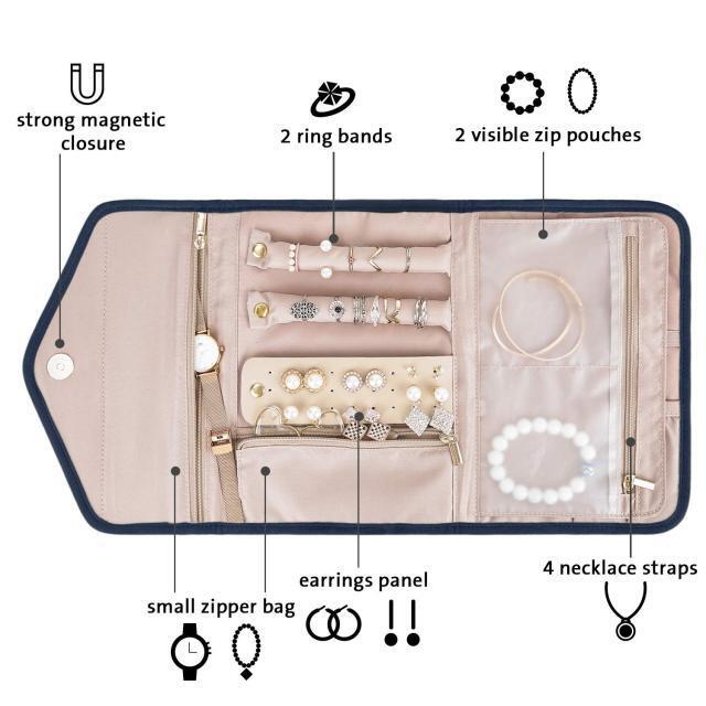 携帯に便利、軽量のジュエリーケースは、お気に入りを大切に持ち運べる上に、はずしたアクセサリーもキチンとしまえて、なくす心配がありません。