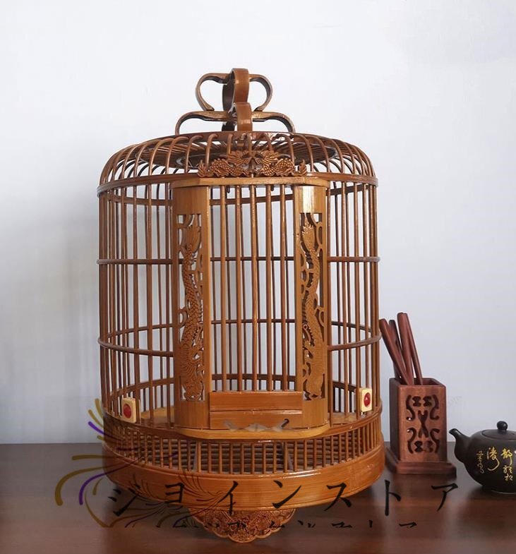 ■稀少新品■ 鳥かご 木彫り 彫刻 竹製 竹細工 アンティーク 木製 鳥籠 工芸品 龍
