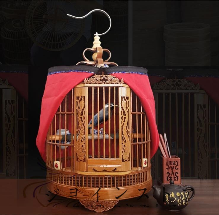変形しにくいの老南竹で制作され 、宮庭式伝統工芸品、ドアの周りと底盤周り細かい彫刻 、手作り竹丸鳥籠。