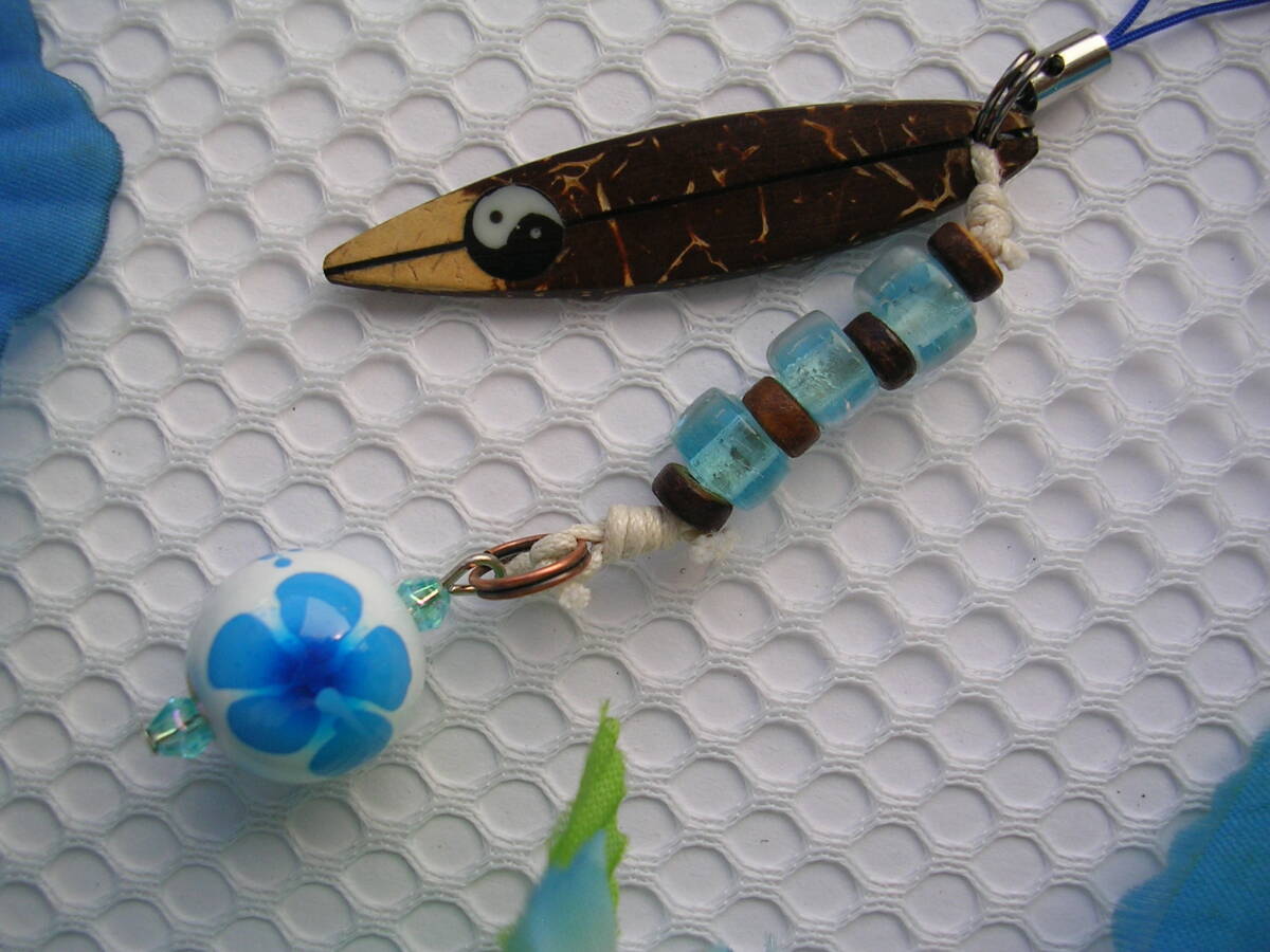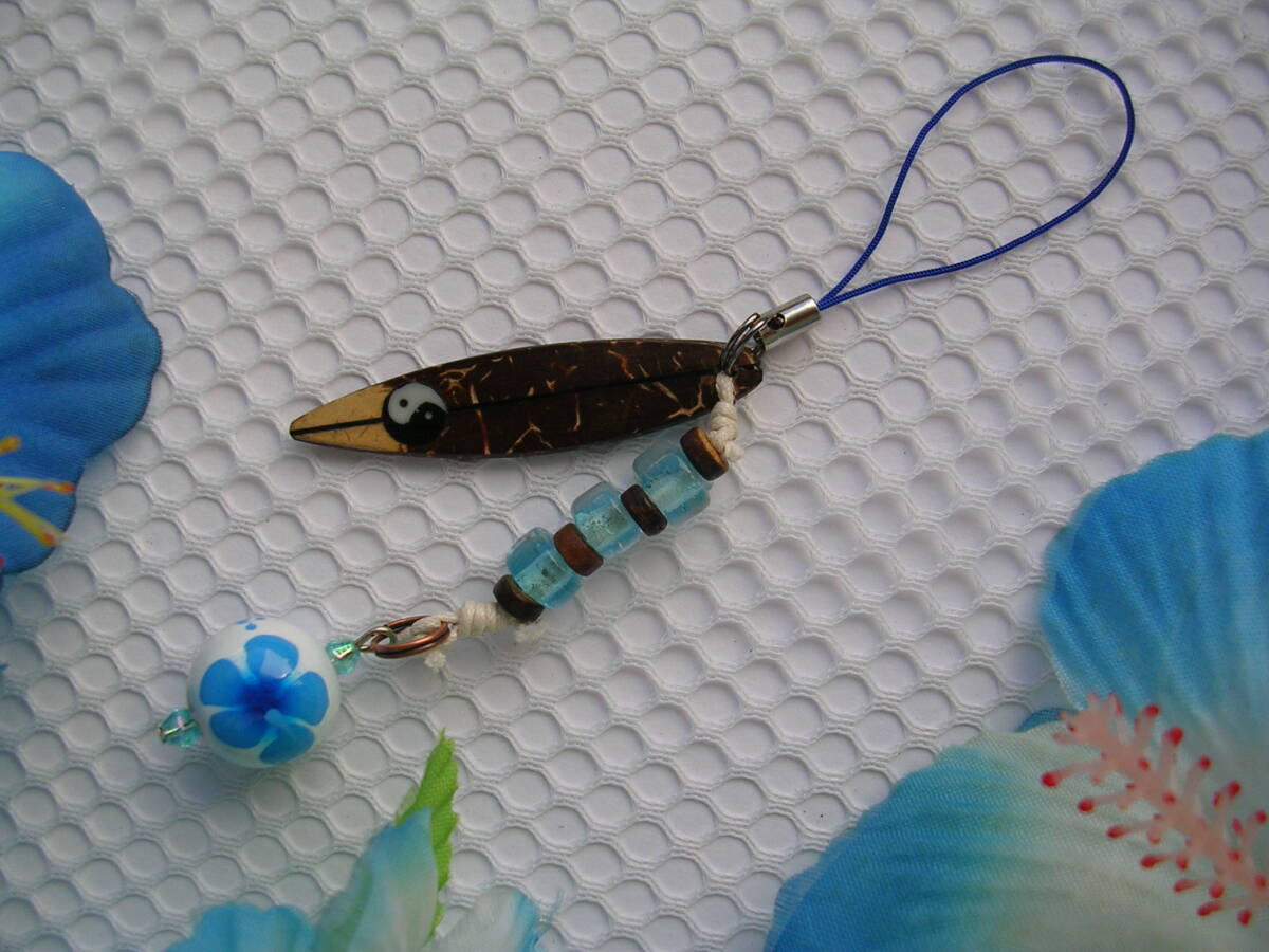 | ●ハワイ最新!★オリジナルハンドメイドデザイン★シェルサーフボード&ウッドビーズストラップ | |||
