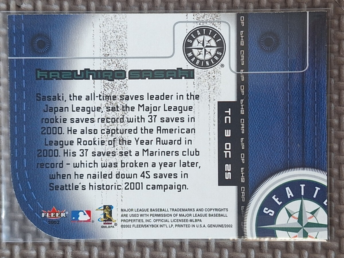 2002 Fleer Genuine #TC 3 Of 25 KAZUHIRO SASAKI Tip Of The Cap Die-Cut Seattle Mariners Yokohama Taiyo Whales