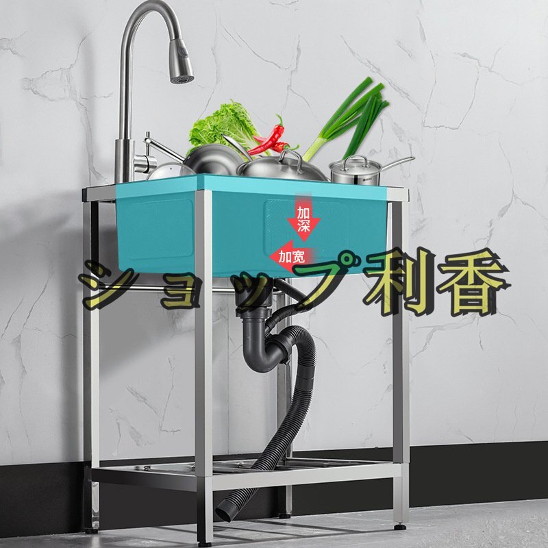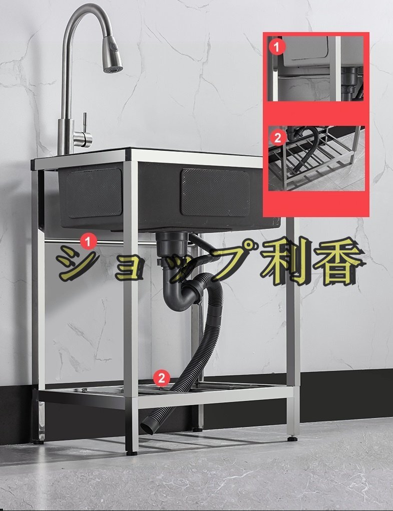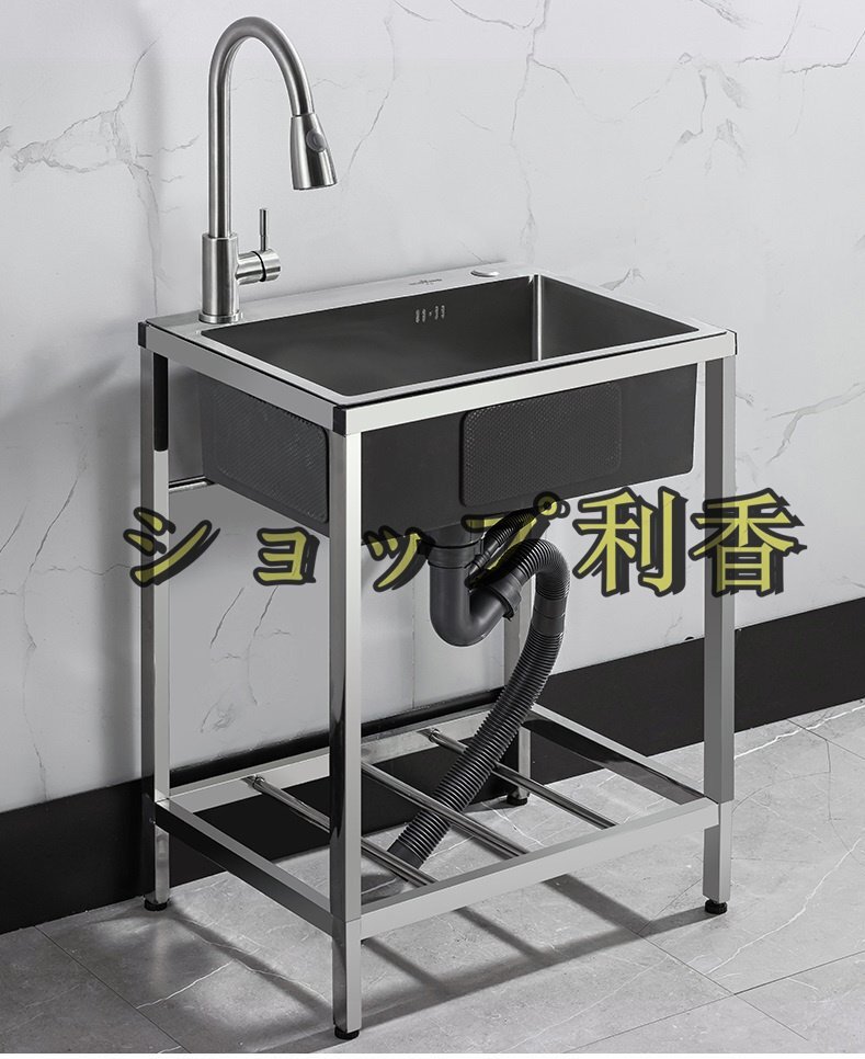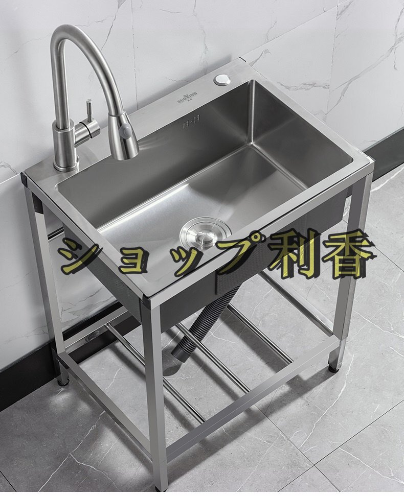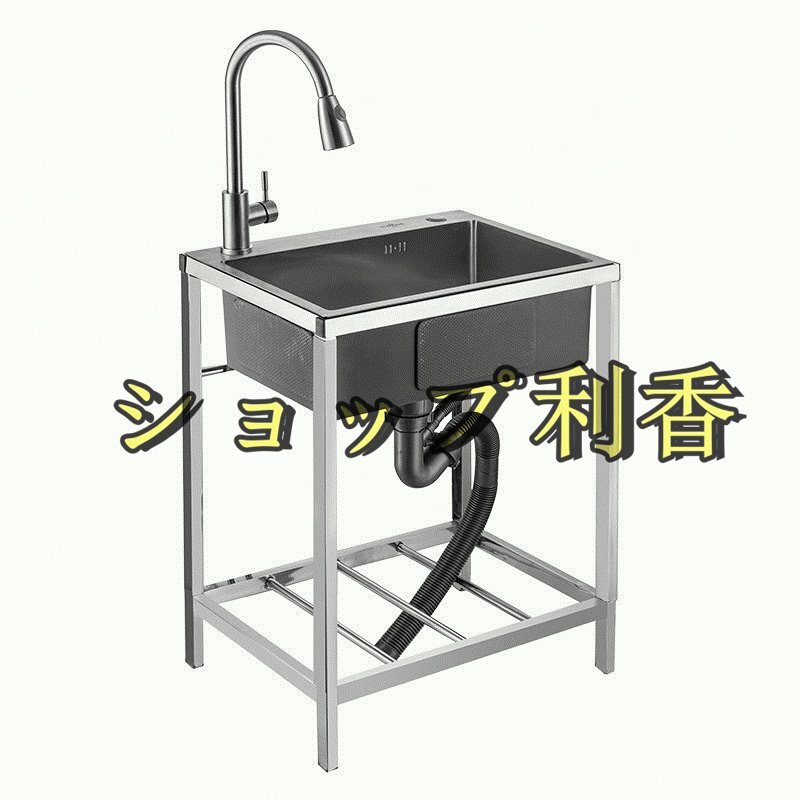 高級シンク ステンレス製流し台 台所 1槽シンク 食器洗いシンク 業務用 家庭用 食器洗い器 冷熱蛇口/スタンド付き