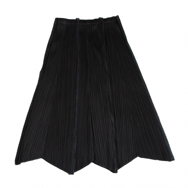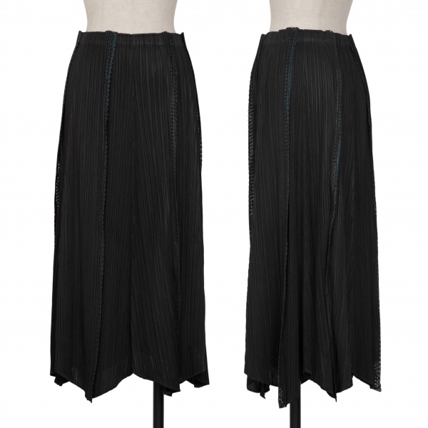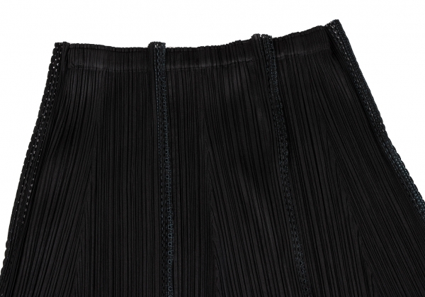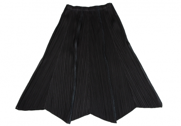 プリーツプリーズPLEATS PLEASE ラメレースカッティング切替スカート 黒青3 |