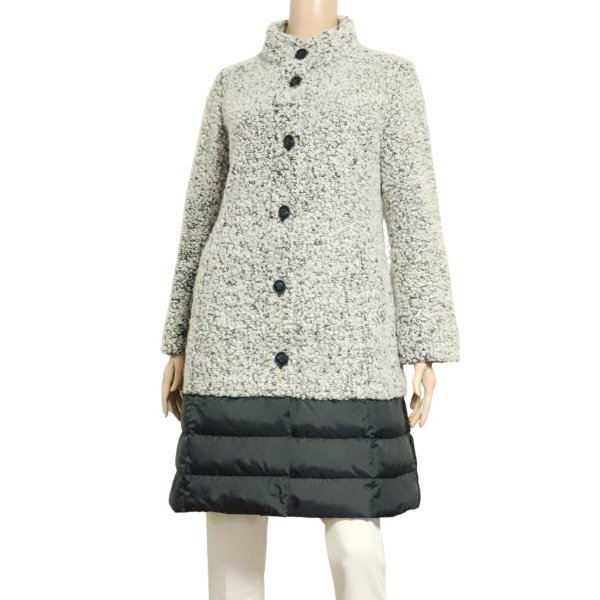 素材*色 | ★【素材】 *(表)ポリエステル 53% 毛 47% (別布)ポリエステル 100%(裏地)ポリエステル 100% (詰め物)ダウン 77% フェザー 23% ★【色】 *グレー、黒 ※お使いの機器により、実物と商品写真の色味が若干異なる場合がございますので、予めご了承下さい。 | ||||||||||