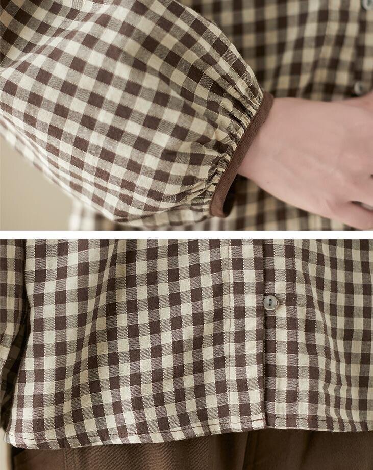 春新作 カジュアル チェック ブラウス 綿麻 大人 通勤通学 可愛い 長袖 トップス チュニック★黒 /2XLサイズ LB525