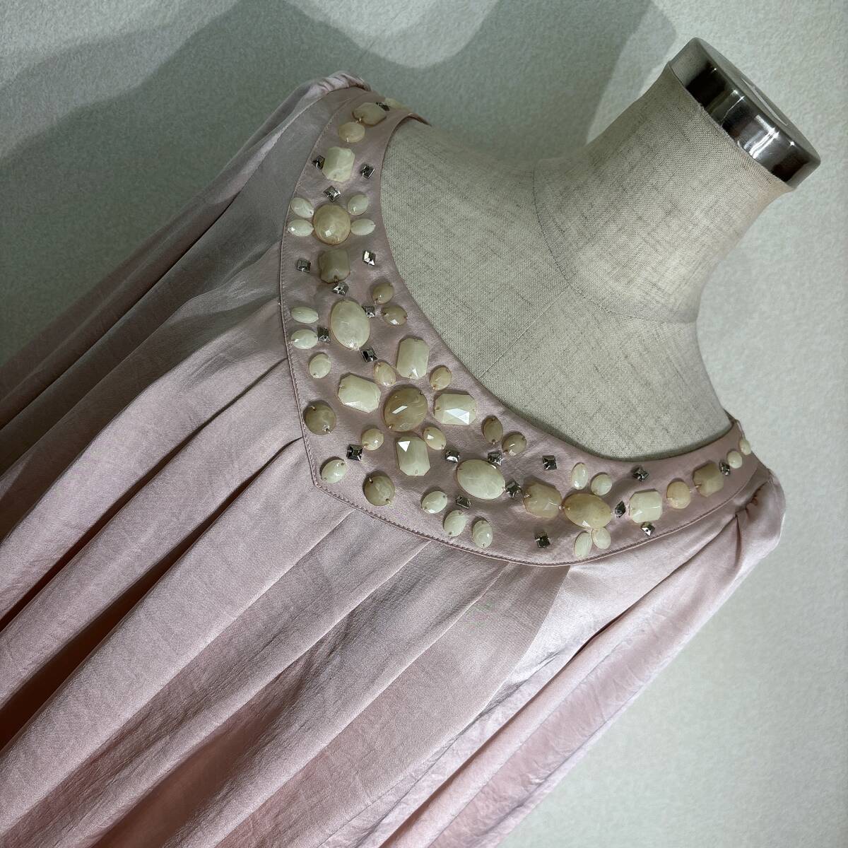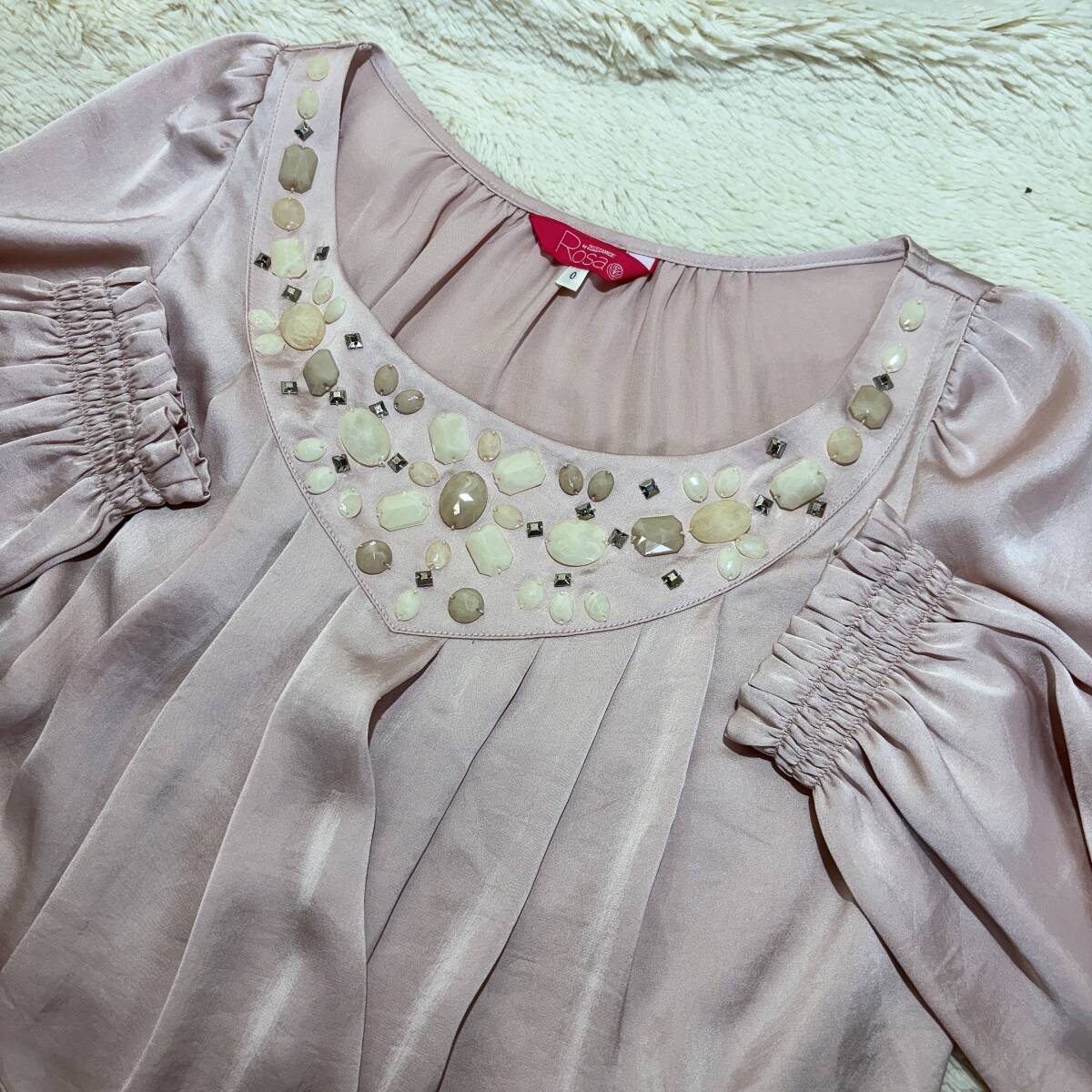 | B764■Rosa/ナラカミーチェ★パールピンク/サテン&ビジュー★チュニックブラウス■0 | ||||||||||||||||||||