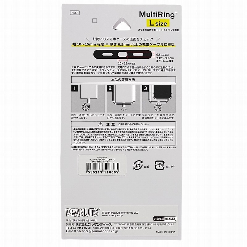 ピーナッツ マルチリングプラス Lサイズ スヌーピー スマホ iPhone アイフォン ストラップ ケース