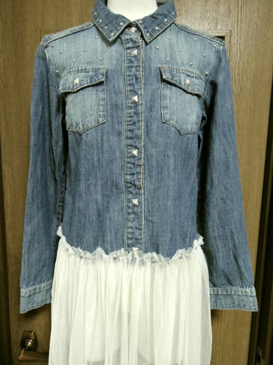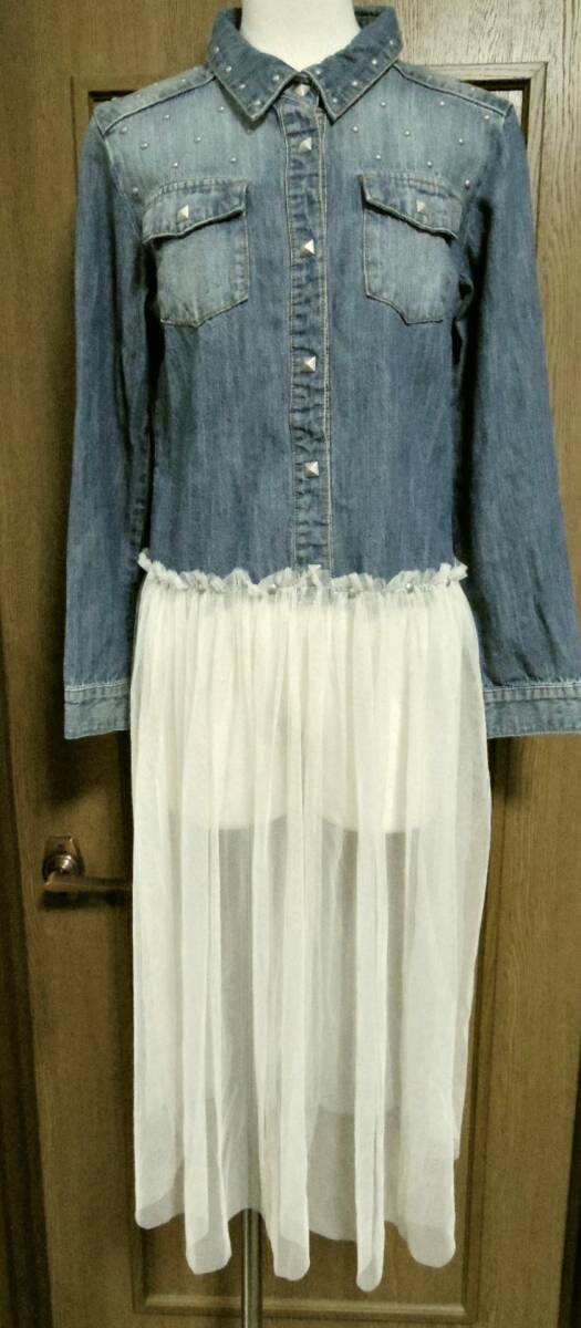 即決!!新品 自宅保管品 キャンディストリッパー gジャンタイプデニムとホワイトチュールドッキングワンピース サイズ2になります。