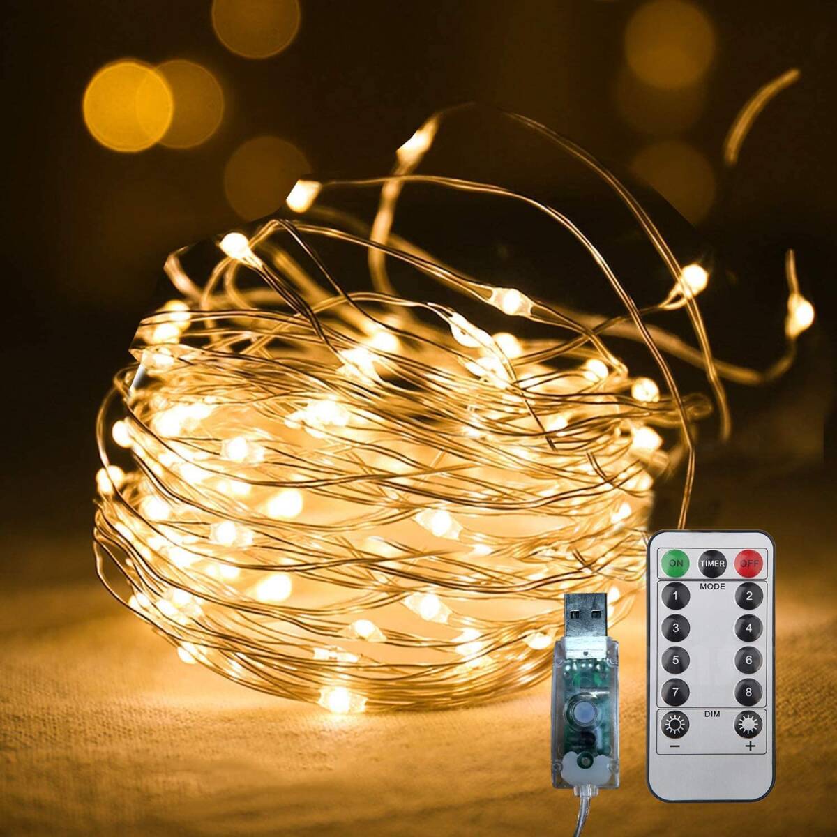 イルミネーションライト USB リモコン付 防水 100LED 10m 暖色