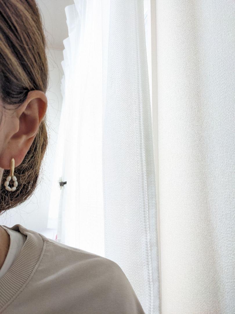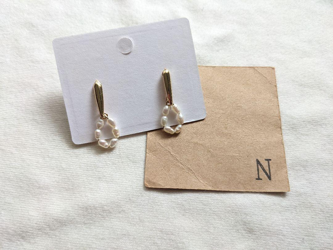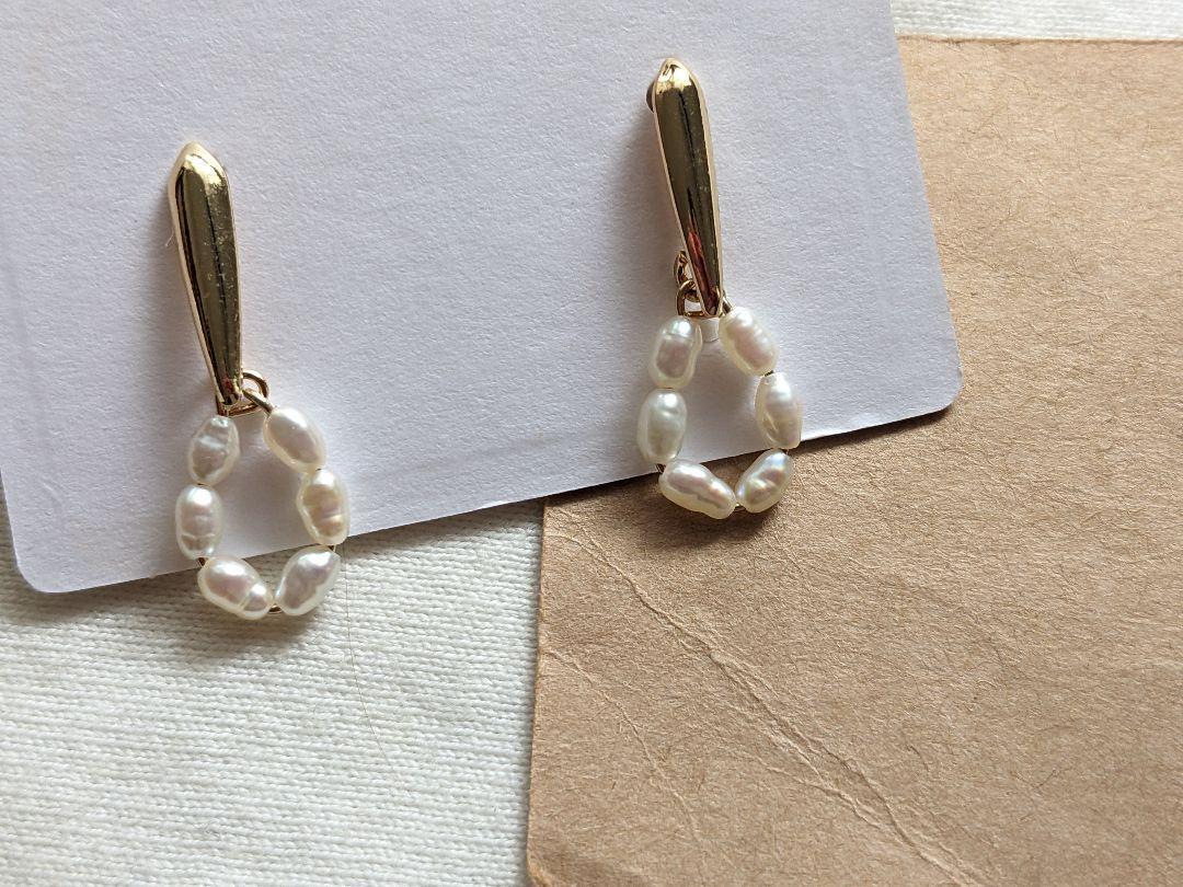 ゴールドカラーバーと淡水パールサークルのピアスです。天然パールの上品な輝きが素敵です。Tシャツやワイドパンツ、デニム、スカートなどに。