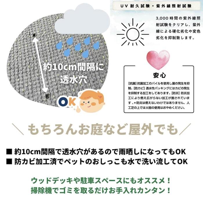 人工芝は防草シートを下地にすることで雑草を大幅に軽減することができますので別途お買い求めください。