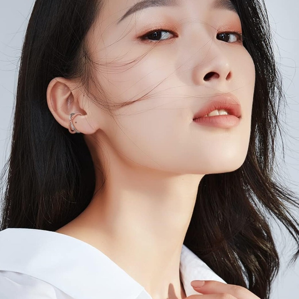 【装着しやすい】イヤーカフのサイズは微調整も可能です。耳たぶや軟骨部分にそっと埋め込み、固定すれば手を緩めることができ。耳につけて、ゆるい場合は、指で押さえながらゆっくりと力を入れてイヤーカフを調整してください。きつすぎる場合は、レディースイヤーカフをサインペンの上に置いてサイズを調整します。フェイクピアスも他のイヤリングと気軽に合わせられます。