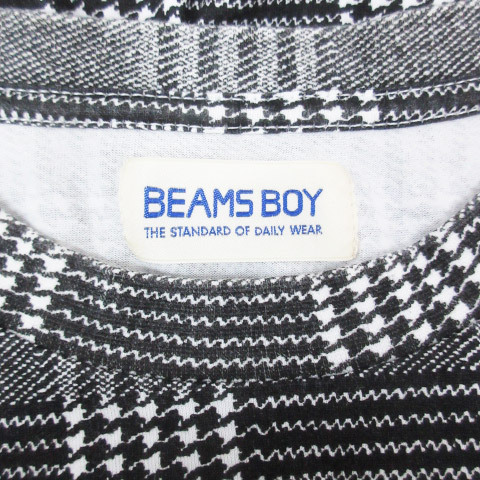 ビームスボーイ BEAMS BOY カットソー 長袖 クルーネック グレンチェック柄 F 白 黒 ホワイト ブラック /FF6 レディース