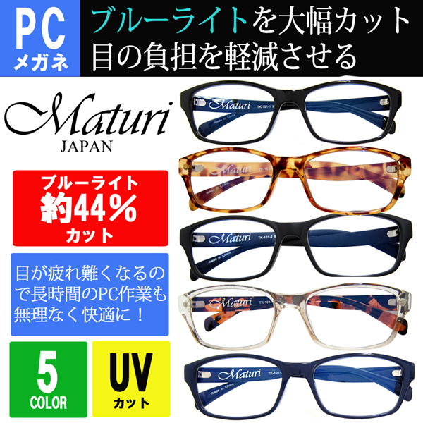 Maturi マトゥーリ PC メガネ 眼鏡 伊達 めがね ブルーライト ケース付き TK-101 選べる 定価6500円