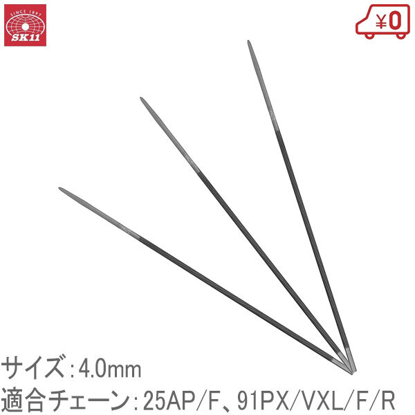 SK11 チェーンソーヤスリ 3本組 径4.0mm 適合チェーン25AP/F 91PX/VXL/F/R 目立て やすり
