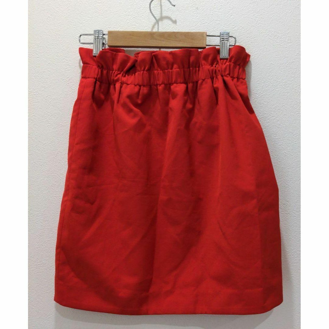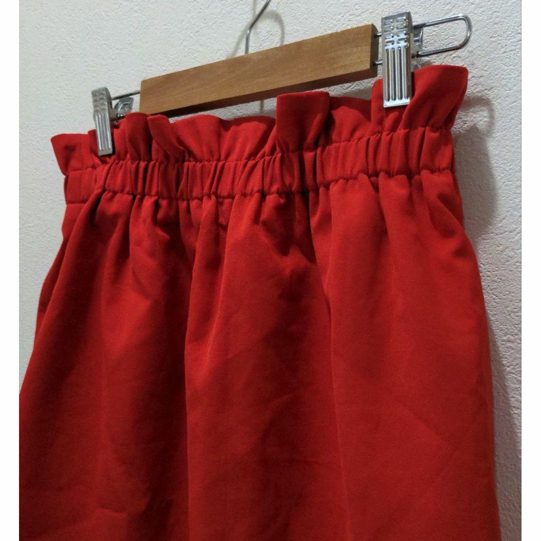 【商品名】ウエストゴム ミニスカート レッド 裏地付き レディース
