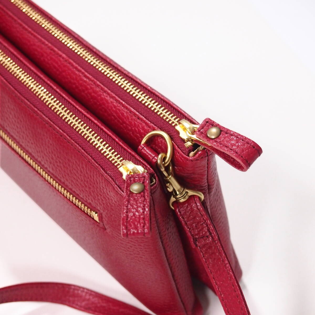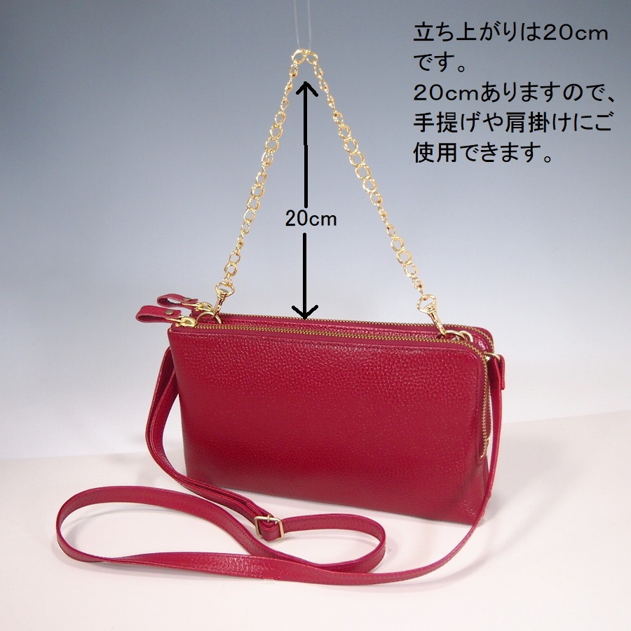 ★新品★ハンドメイド★日本製★ソフト本革★お財布ポシェット★ダブルファスナー★斜め掛けショルダーバッグ★アカ色★ゴールドチェーン★