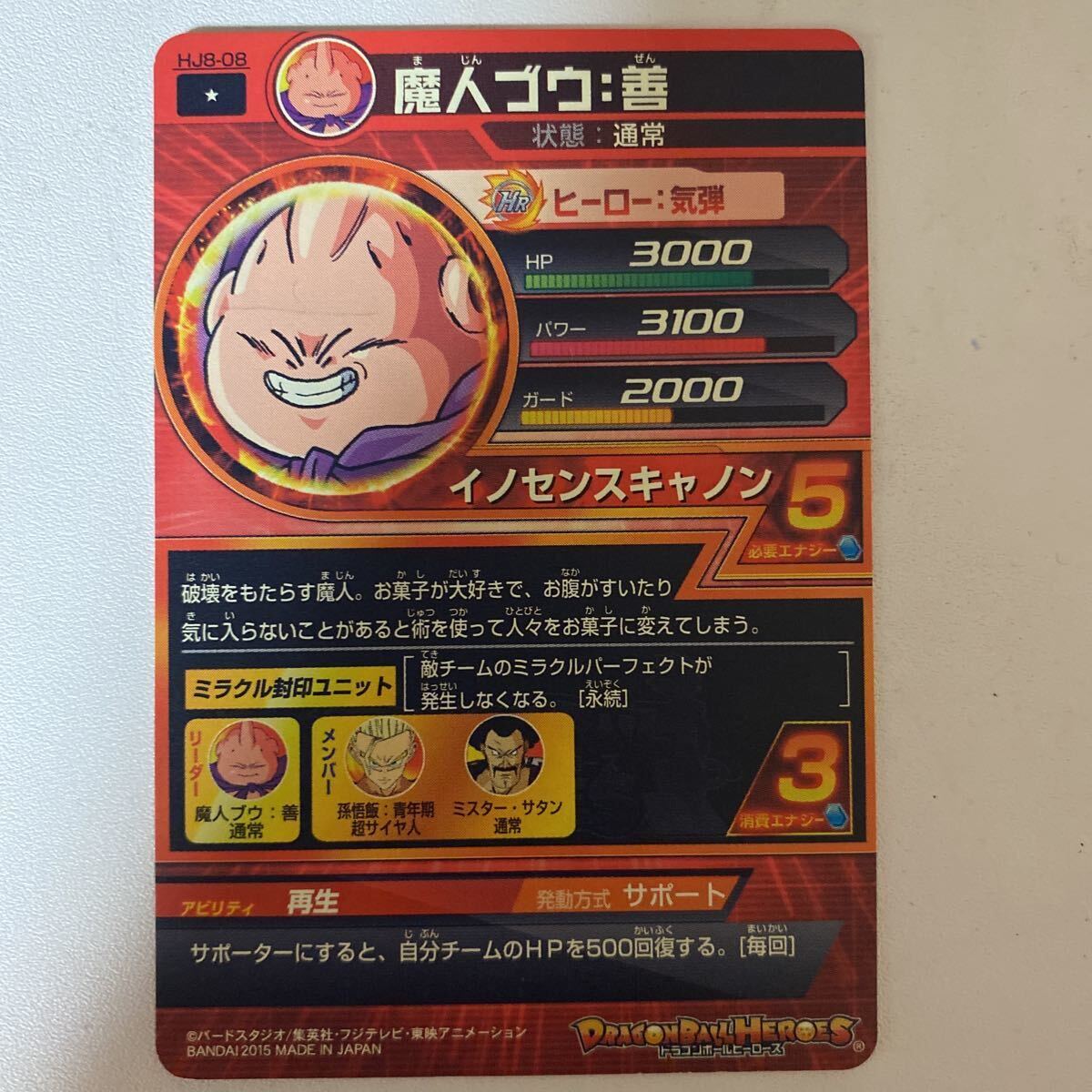 HJ8弾コモン/ 魔人ブウ:善(通常)/ HJ8-08/ 技:イノセンスキャノン/ ドラゴンボールヒーローズ/ レアリティ:☆/ 2015 BANDAI