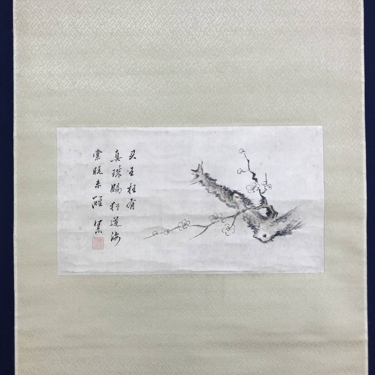 真作/田能村竹田/梅花老木画詩/梅花図/横物/掛軸☆宝船☆AF-290
