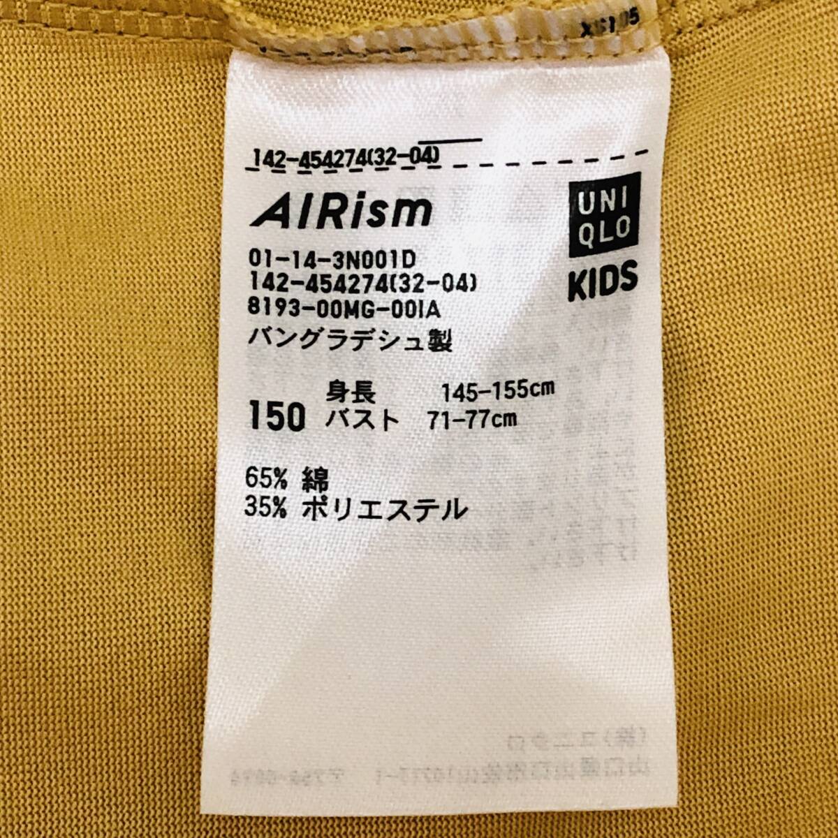 a04027 美品 UNIQLO KIDS ユニクロ トップス 半袖 エアリズム 綿混 150 黄色 無地 女児 ガーリー おしゃれ キュートなスイートスタイル