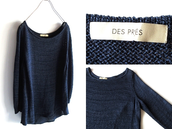 DES PRES デプレ TOMORROWLAND トゥモローランド レーヨンコットンペーパー ニット サマーセーター 1 ネイビー 紺 日本製 春夏