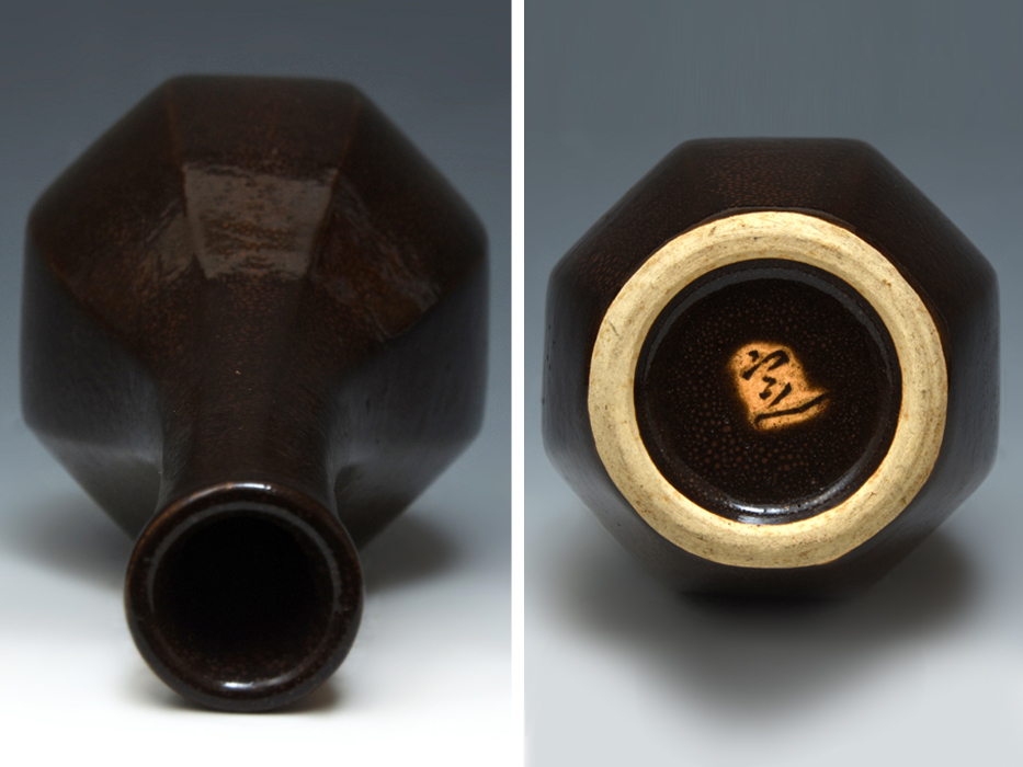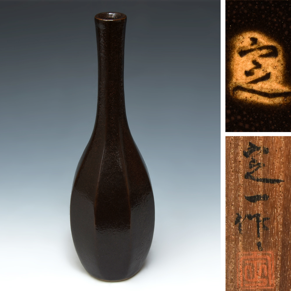 桶谷定一の珍しい油滴花入です。 油滴釉が全体にかけられております。 面は八面とられ、姿も端正です。 花が映える一品です。 底部に銘あり。 美品ですのでキズや欠点はなく、良い状態です。 ※撮影の際に生じた写り込みなどがございます。 ご理解の程よろしくお願い致します。 |