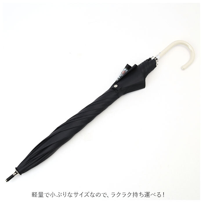 商品説明 | ・・雨の日も晴れの日も使える♪キャラクターの絵柄が可愛らしい、雨晴兼用傘が発売。(親骨47cmタイプ) ・親骨に弾力性があり折れにくいグラスファイバー素材を使用しているので、風が少し強めの日でもちゃんとさせて安心。 ・傘生地の内側にはブラックコーティング加工を施し、UPF50+、UV99%カット、遮光率99.5%以上! ・開閉時に指先や爪を挟むのを防止する安全ろくろ付きで、スムーズに開閉できる手開きタイプ。 ・傘生地を留めるバンドは、パチンッと留めやすいスナップボタン式。 ・手元ハンドル部分には合皮レザーを採用し、上品な印象を演出。(※カラーにより、ハンドルの色が異なります。) ・軽量で小ぶりなサイズなので、ラクラク持ち運べる! |