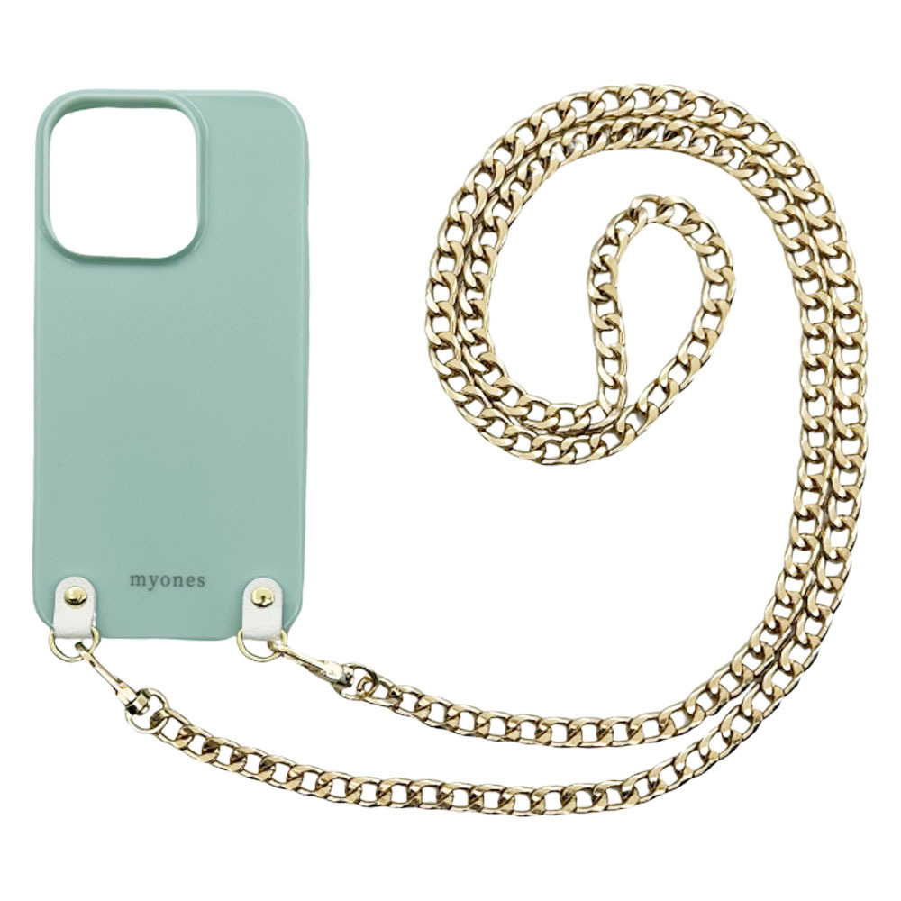 Galaxy A21 SC-42A SCV49(くすみグリーン/ゴールドA)チェーン ソフトケース スマホショルダー 肩掛け 首かけ 斜めがけ かわいい 韓国