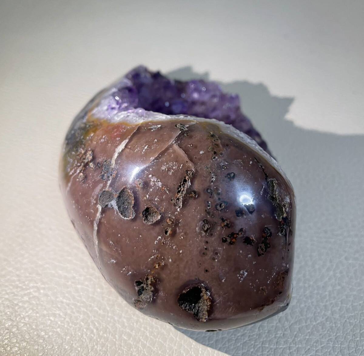 ●アメジスト笑口はベースがアメジストの為、アメジスト同様にストレスを軽減しネガティブな感情を浄化する効果があります。また笑顔を表すかのように体調面への作用が大きく、健やかな気を纏わせてくれ健康維持にも効果があるとされています。