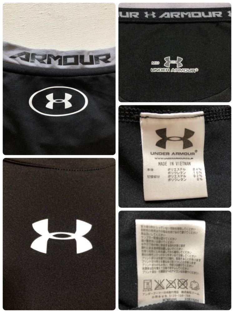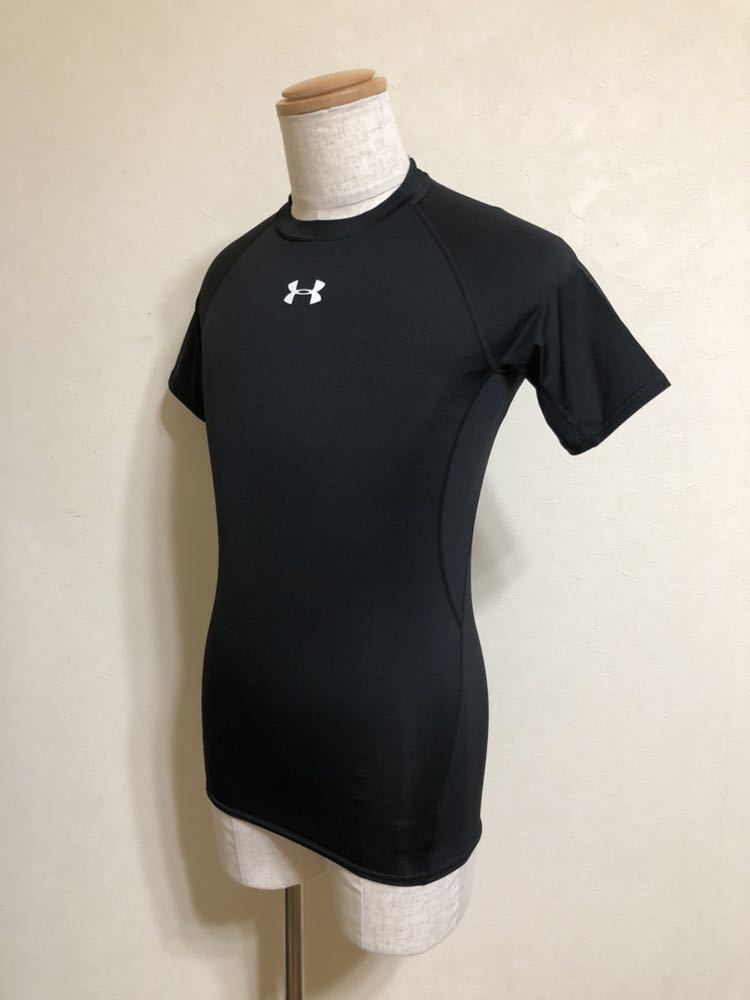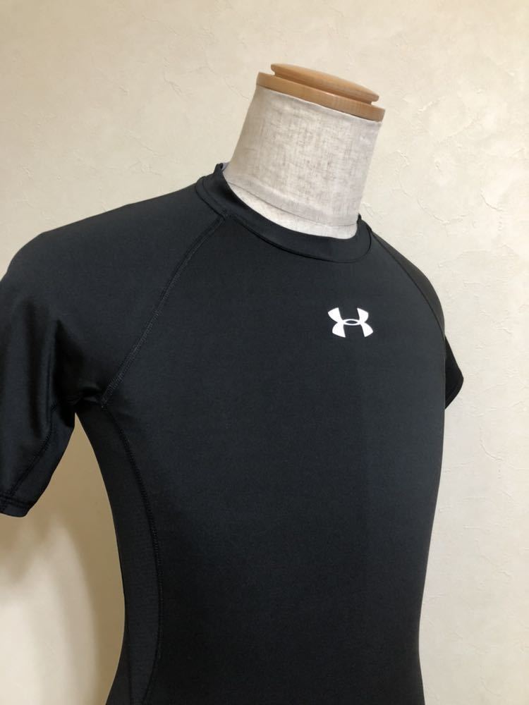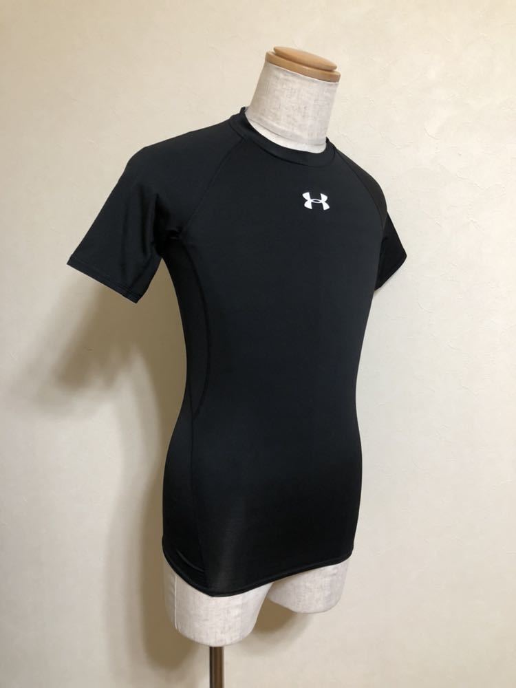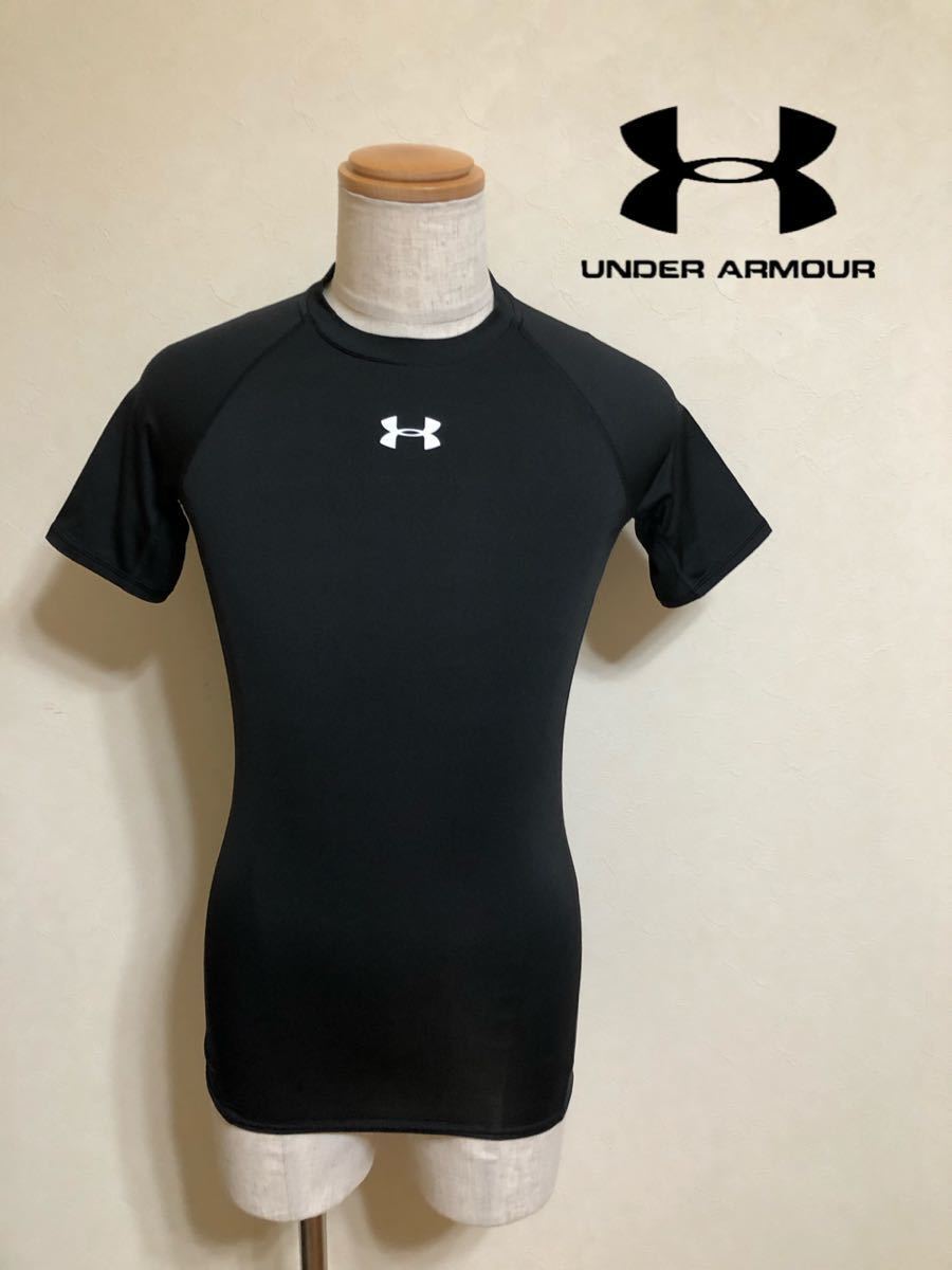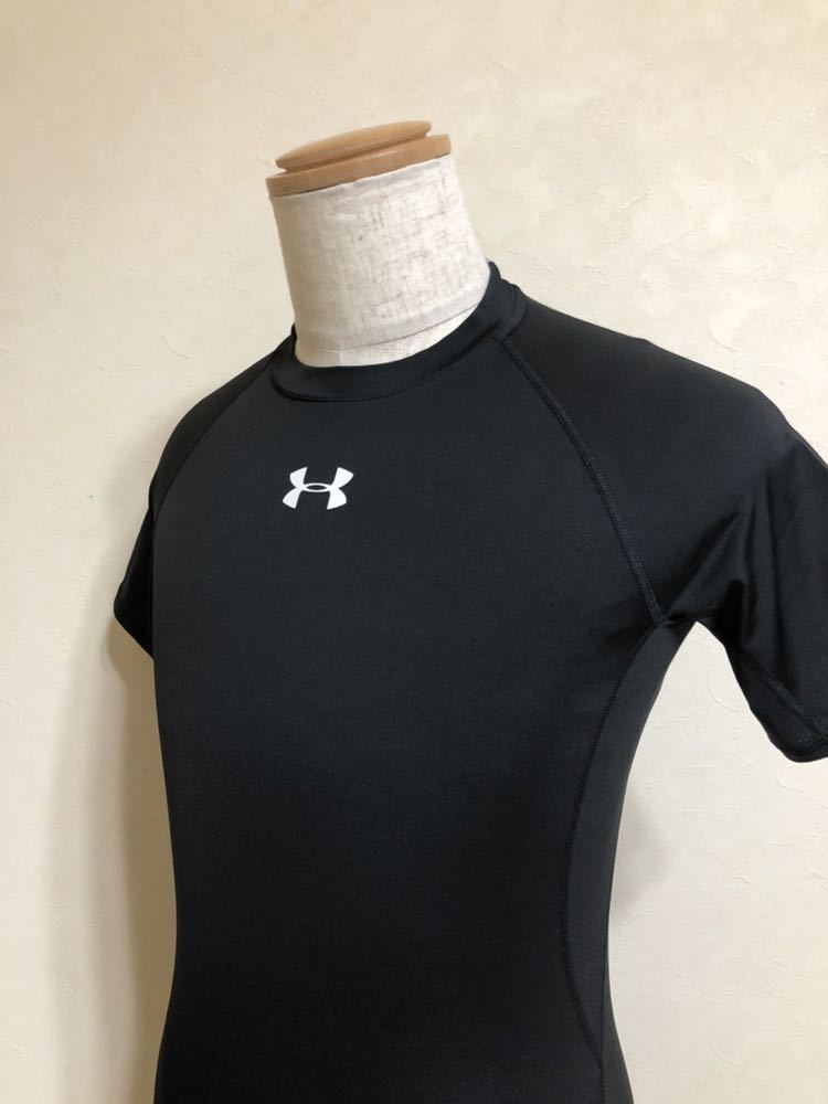 【美品】 UNDER ARMOUR UA HG COMPRESSION アンダーアーマー ヒートギア コンプレッション トップス サイズMD 半袖 ブラック MCM8495 黒